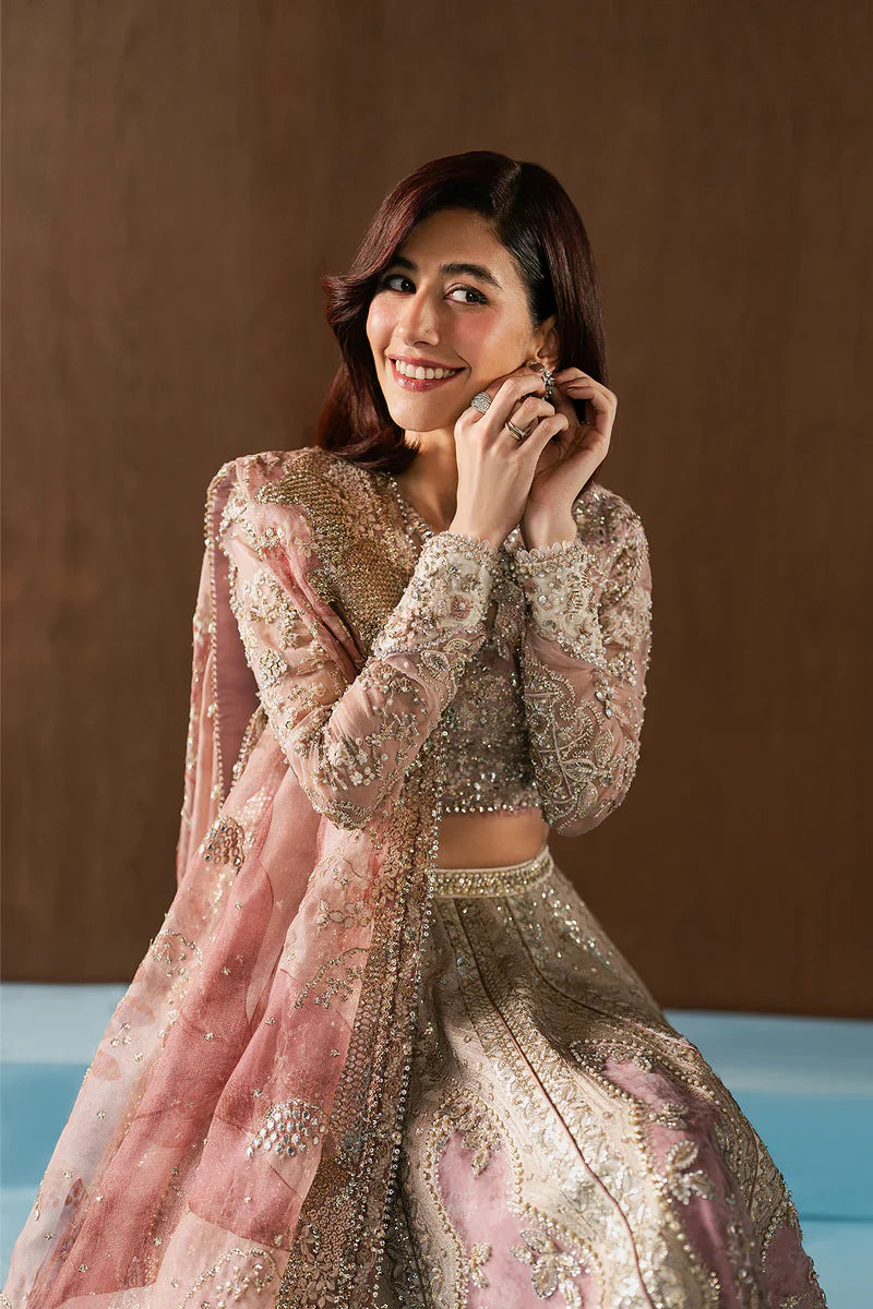 PINK ORGANZA 46" HAND EMBELLISHED EMBROIDERED SLEEVES 1 PC