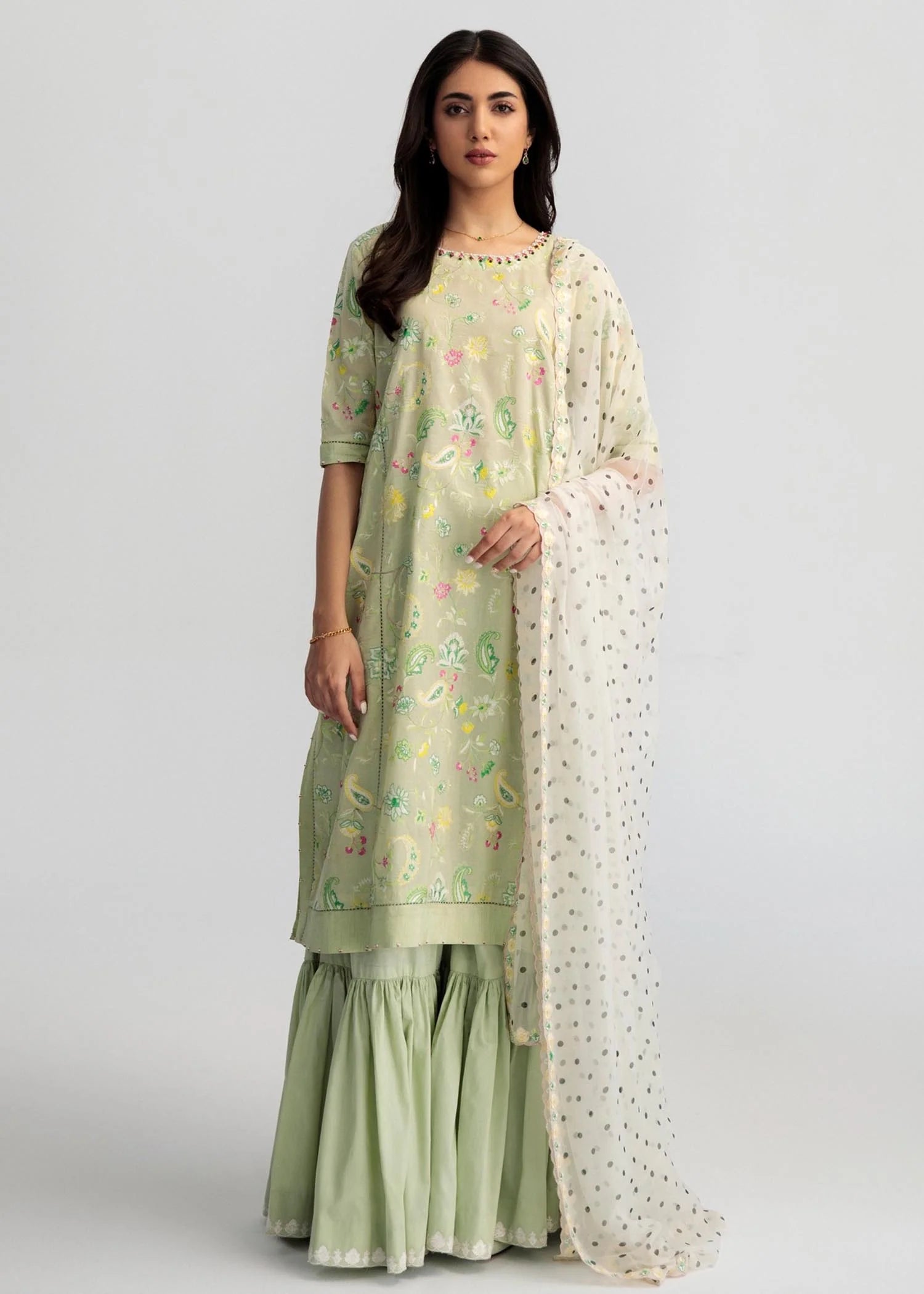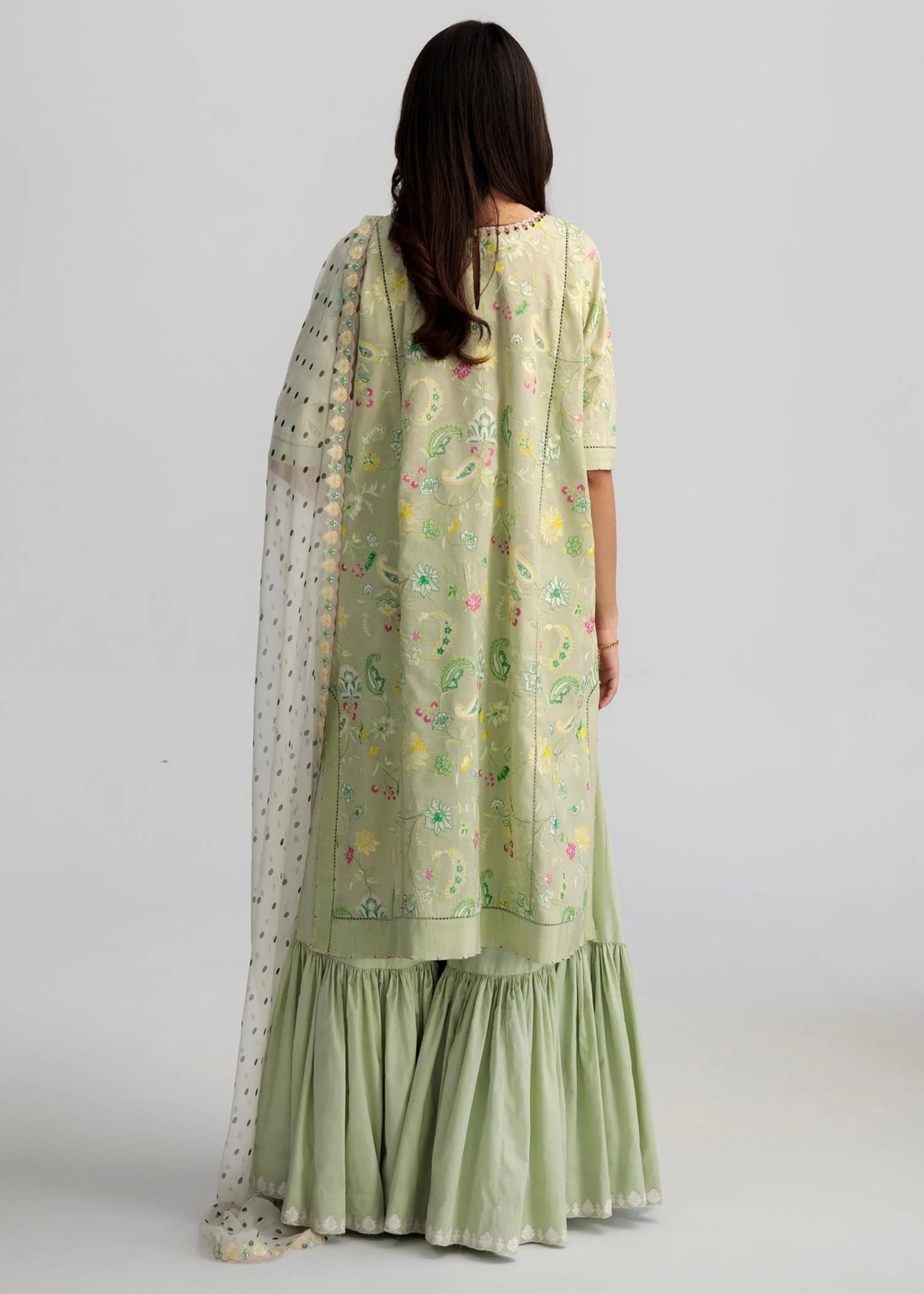 From time to time beading/ sequences may get displaced and this is not regarded as a fault but is due to the nature of the work. These garments should be worn with care.