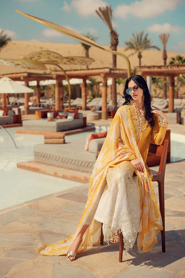 Hand worked neckline incrusted with sequin, pearls and rhinestones