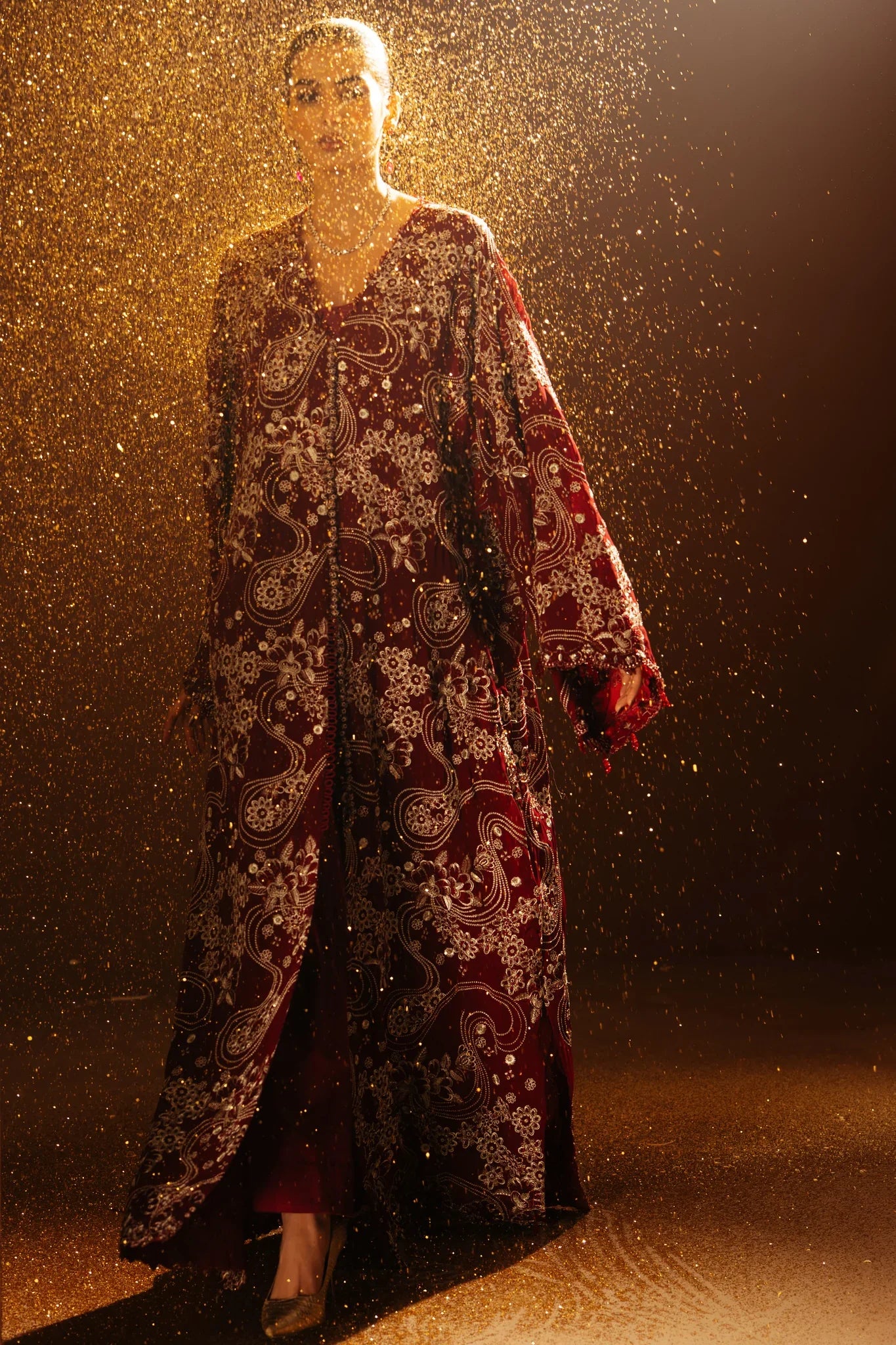 Framed by meticulously crafted borders, the design unfolds with effortless sophistication—every detail reflecting refined artistry and timeless allure. Étoile Rouge is made for those who seek a statement of festive grandeur, a fabric that exudes enduring charm and leaves an unforgettable impression.