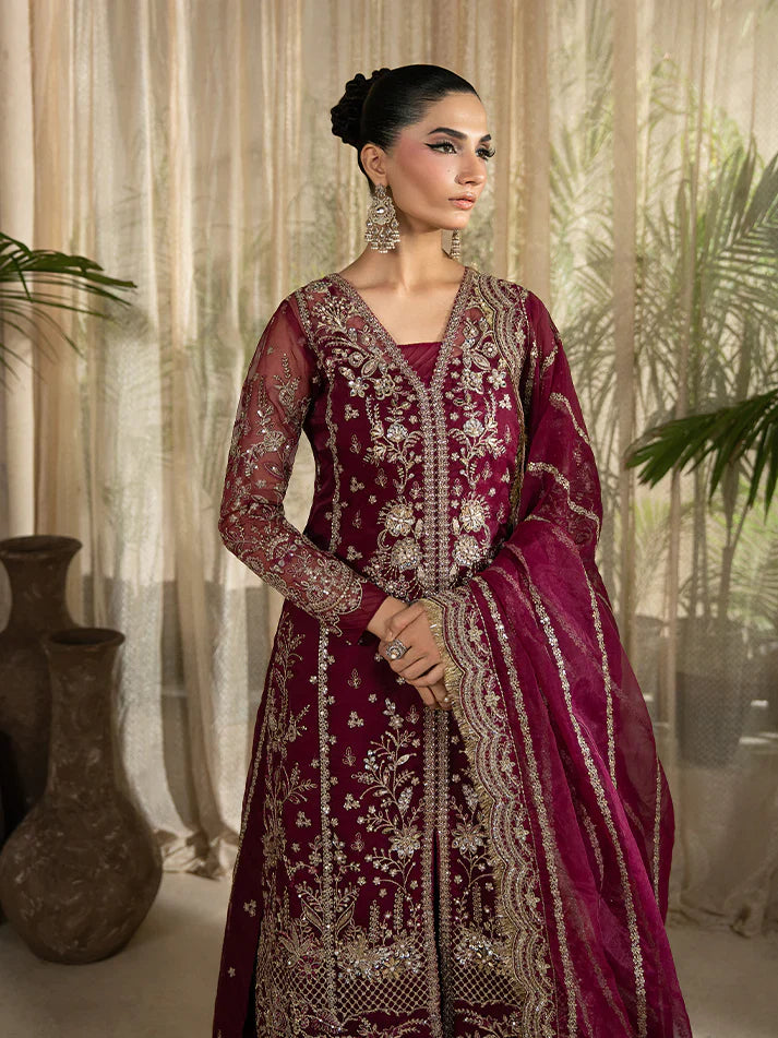 • Embroidered and sequined organza motifs for front daaman