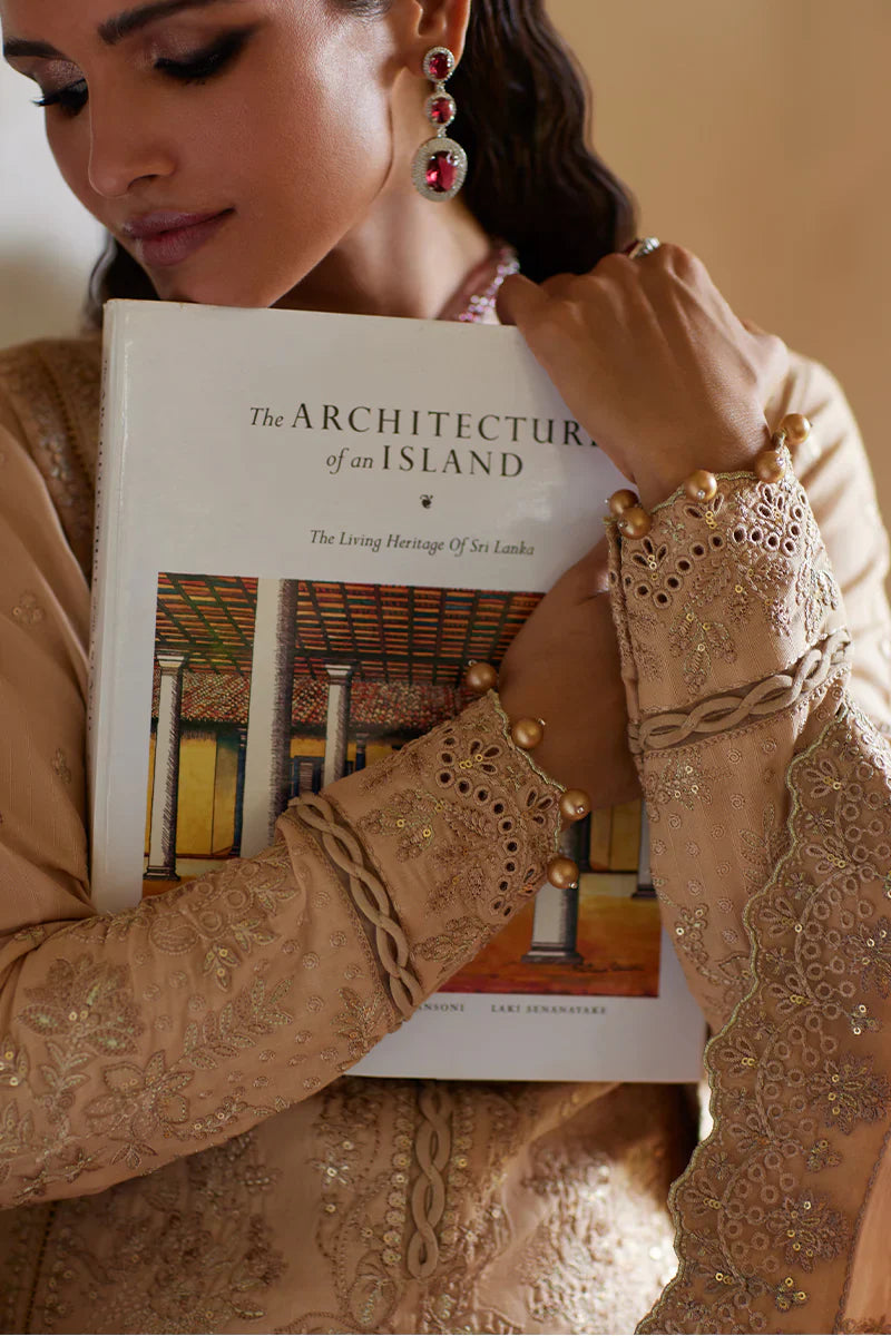 - Embroidered and Sequined Rib Lawn Left Panel for Front