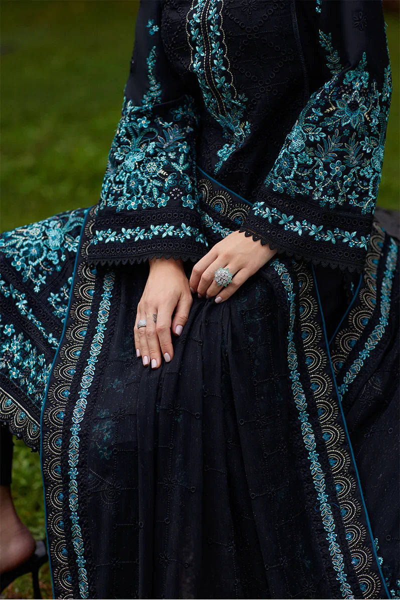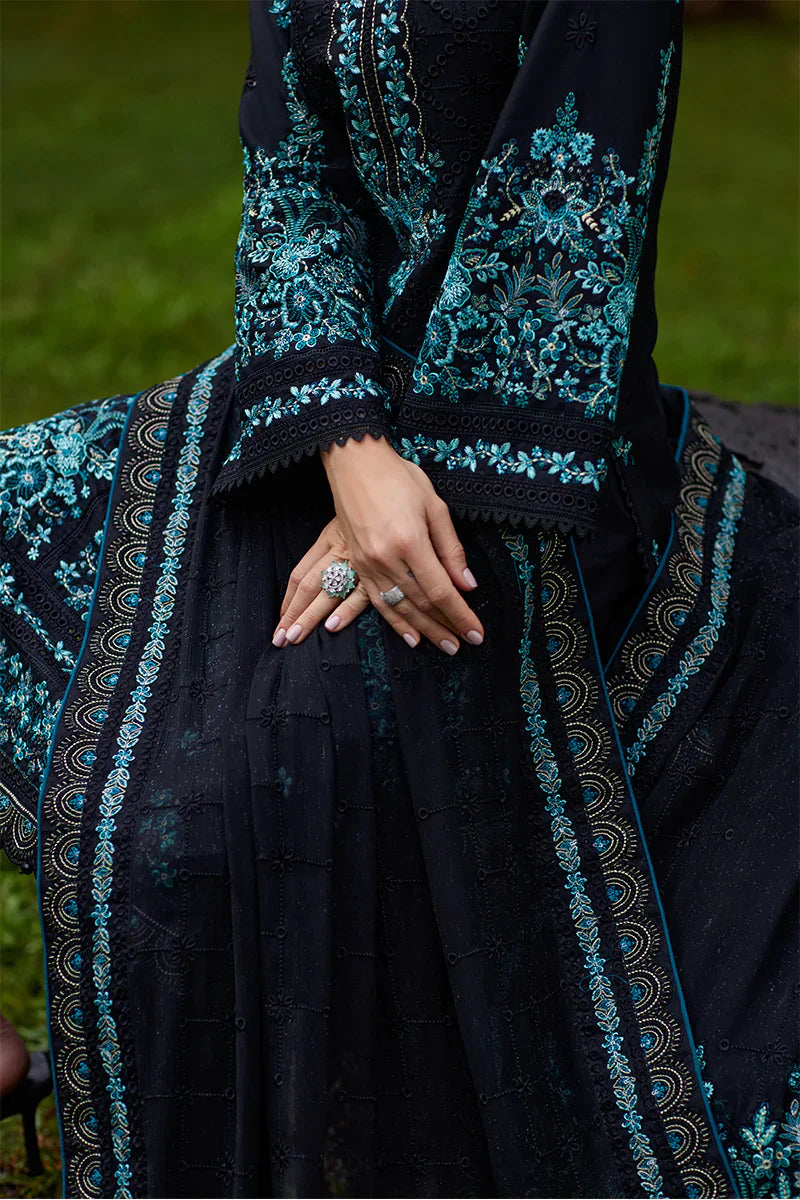 - Embroidered and Sequined Rib Lawn Left Panel for Front