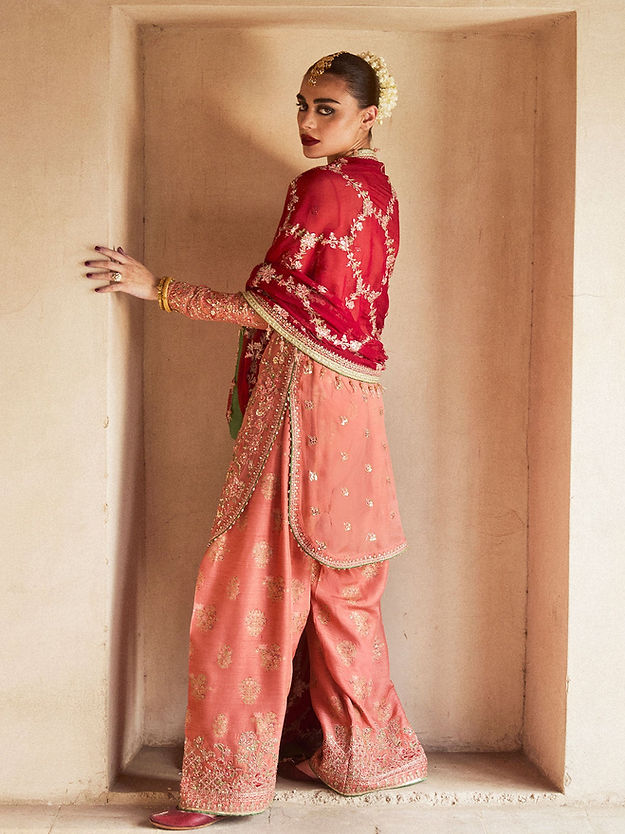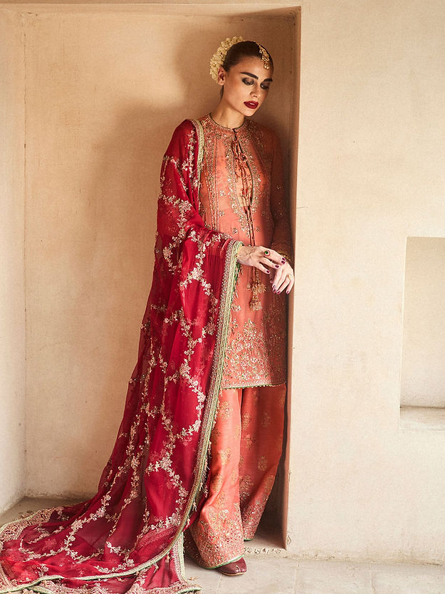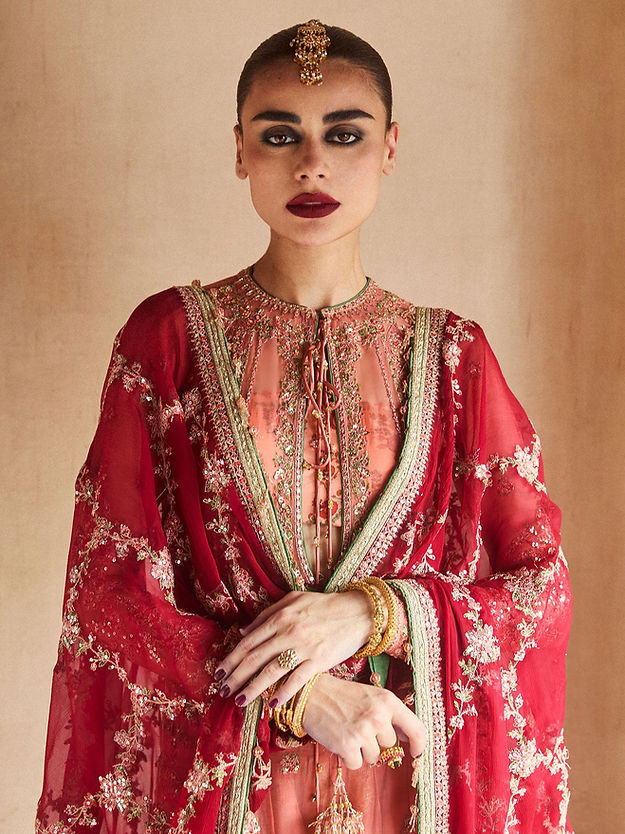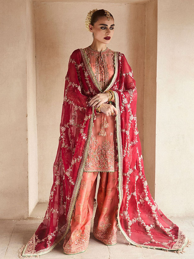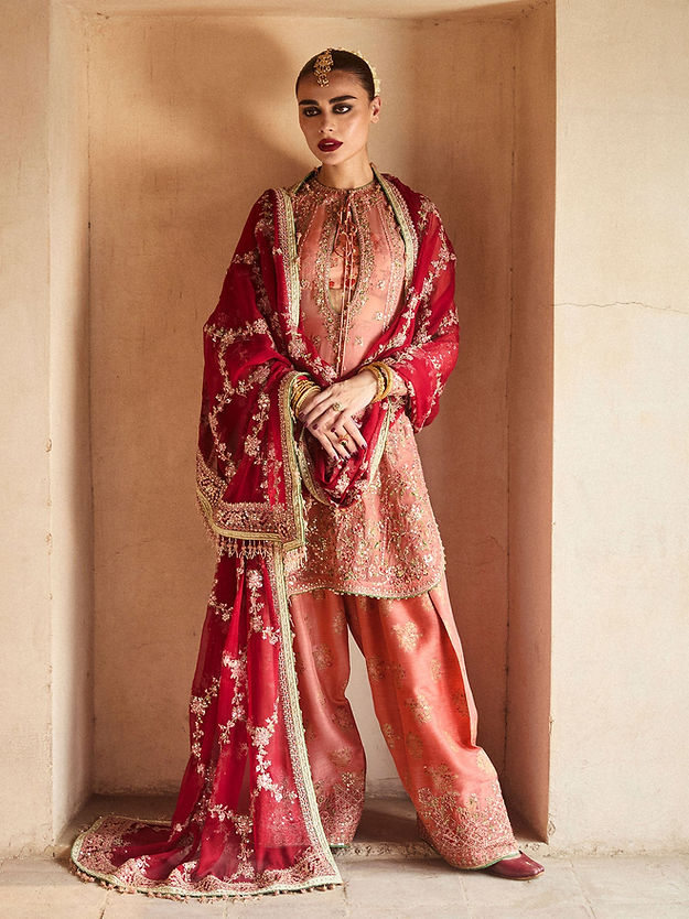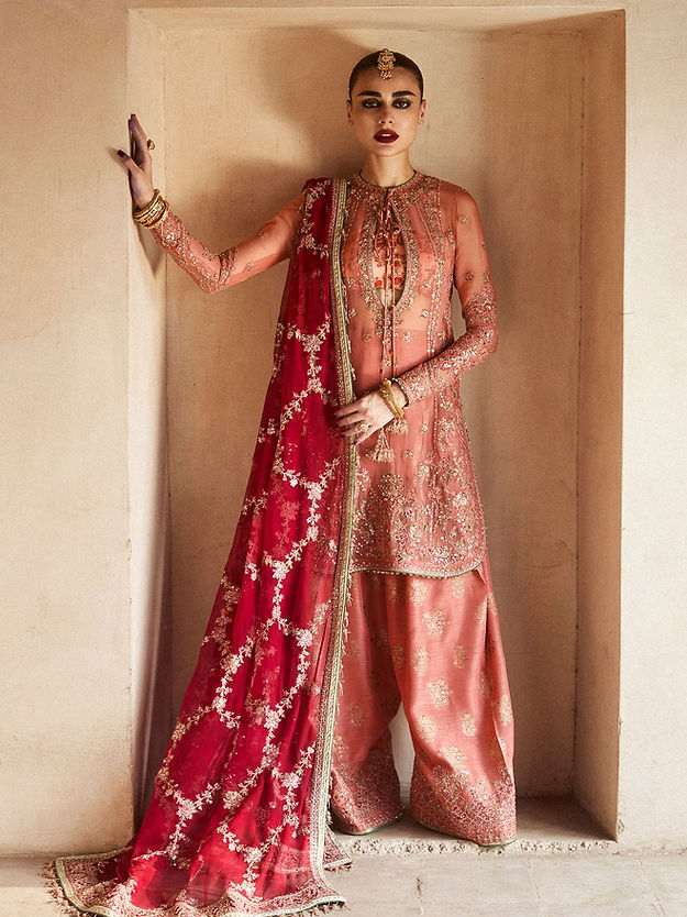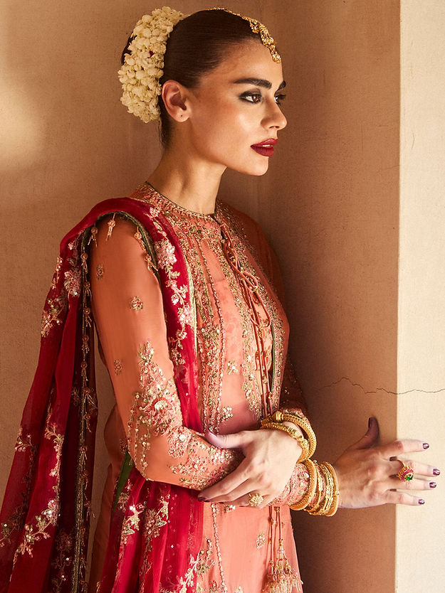 The chiffon embroidered shirt is made of lightweight and sheer fabric, embellished with intricate adda work. The screen printed and embroidered shalwar adds a graceful and traditional touch to the ensemble.The chiffon dupatta with unique embroidered jaal and four side borders to complete this look.Overall, this outfit is a perfect blend of style, grace, and traditional charm.