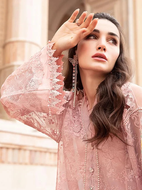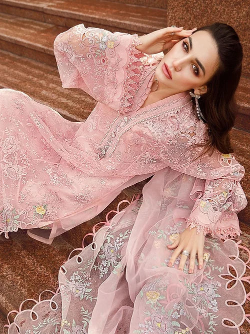 Embroidered Organza Side Panels With 3D Flowers