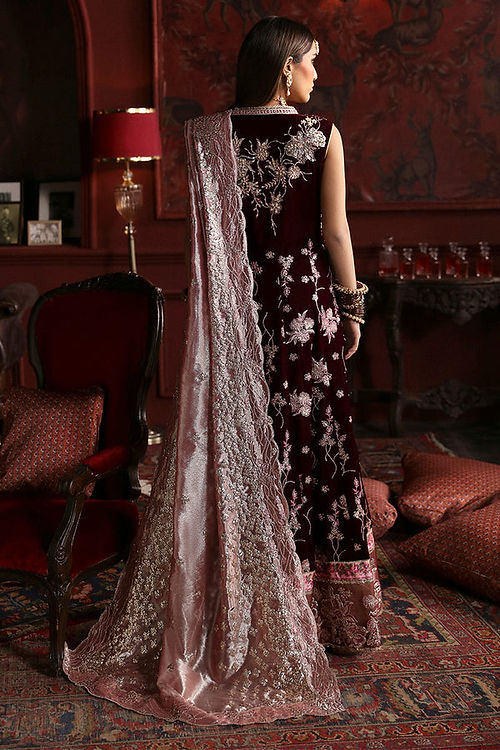 -Embroidered, sequined and hand embellished velvet for front yoke