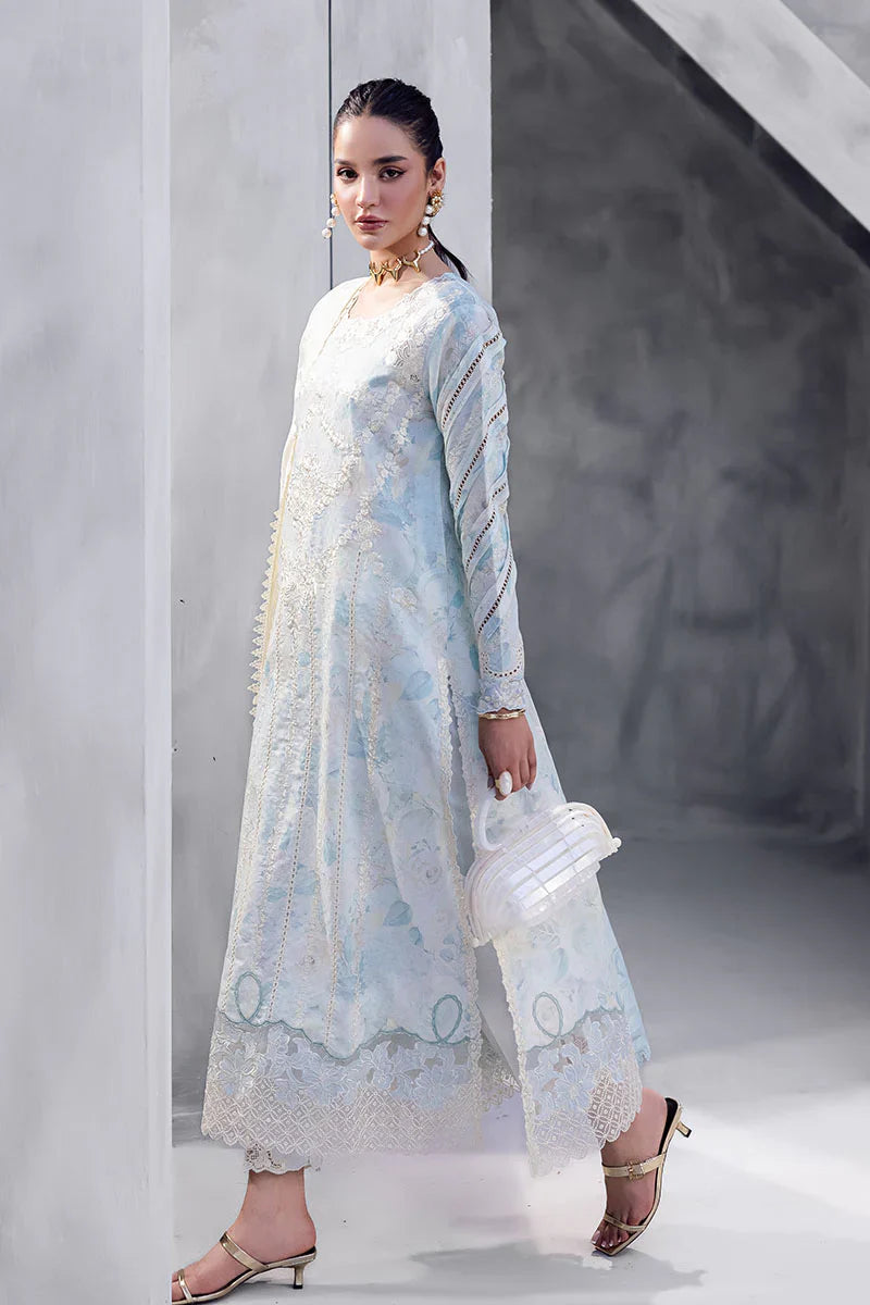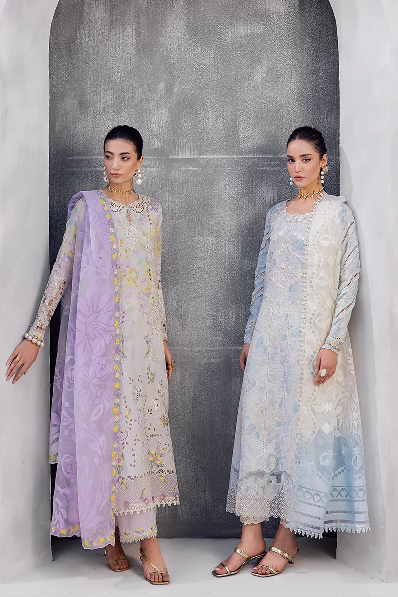 Ayzel — freshness, redefined. Rendered in a refreshing mint blue shade, Ayzel is an embroidered lawn ensemble that radiates light sophistication and charm. Intricately detailed with delicate embroidery, it is paired with a stunning two-tone dyed burn out dupatta — a dreamy mix of white and mint blue. An effortless statement for breezy summer days.