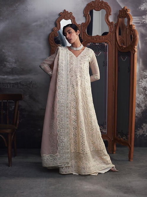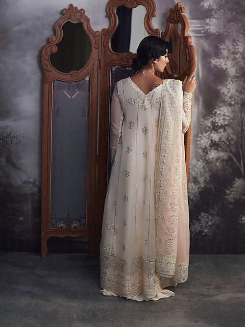 From time to time beading/ sequences may get displaced and this is not regarded as a fault but is due to the nature of the work. These garments should be worn with care.