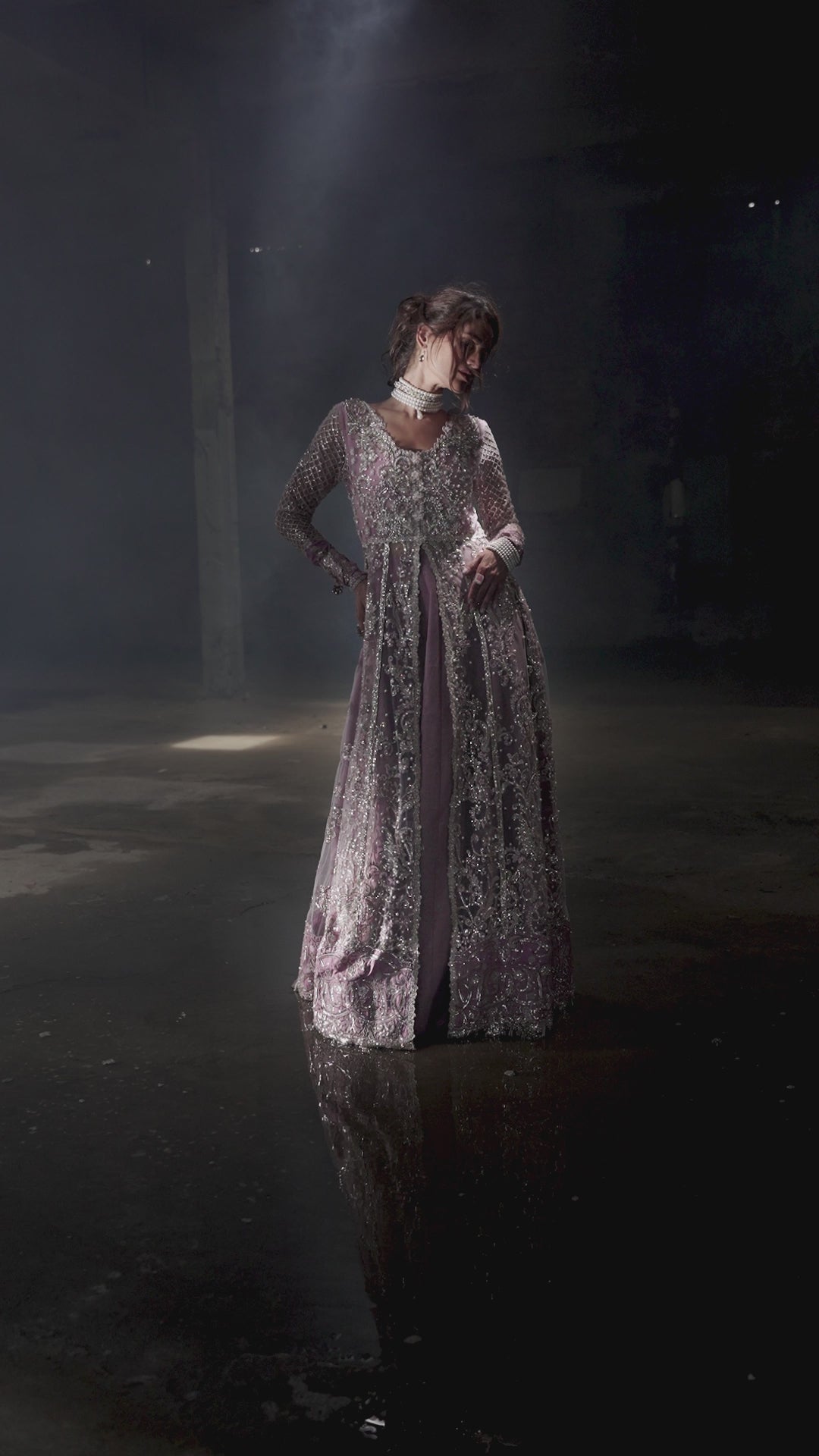 Embroidered, sequinned & hand embellished front yoke (net)