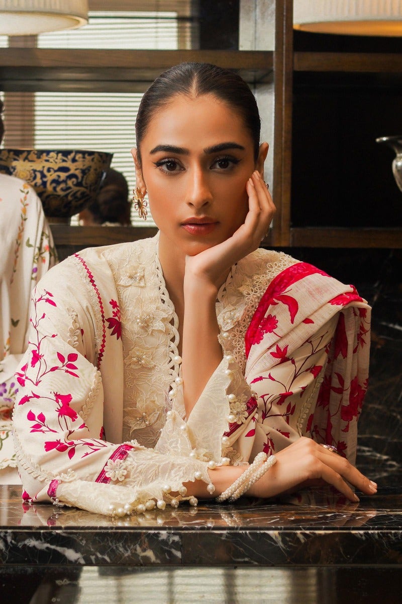 Drawing inspiration from the intricate beauty of Indian paisley, this ensemble weaves a tale of cultural richness. Paired harmoniously with cotton pants that softly speak of simplicity and comfort, and a printed pashmina shawl that exudes the enchanting aura of Mughal charm.
