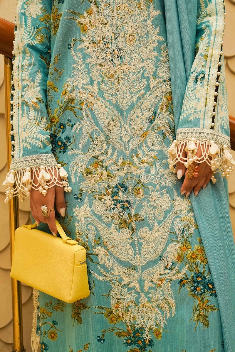 In the intricate dance of this ensemble, the shirt's print, a homage to the Tree of Life, whispers of interconnectedness, while the delicate Kashmiri-inspired embroidery tells tales of timeless craftsmanship. Paired with cotton-dyed pants and an embroidered pashmina shawl, this symphony of elements creates a narrative of sartorial grace.