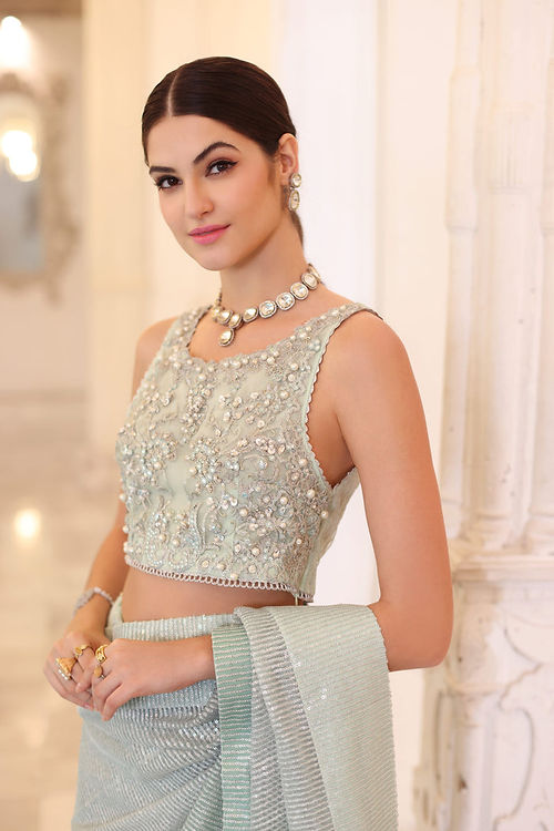 - Sequin & Panni Embroidered and Handwork Net Blouse Front with Pearl, Rhinestone, and Sequin embellishments