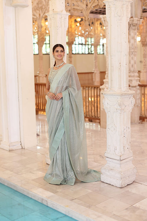 - Sequin Embroidered Ombre Net Saree
