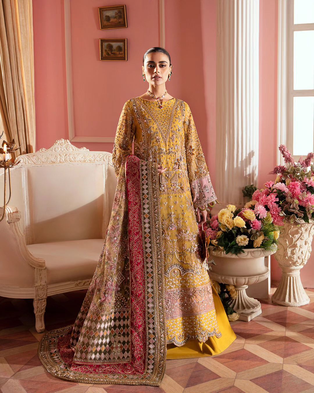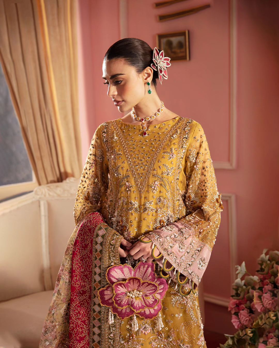 - Embroidered And Hand Embellished Organza Front & Back Daman Border 1