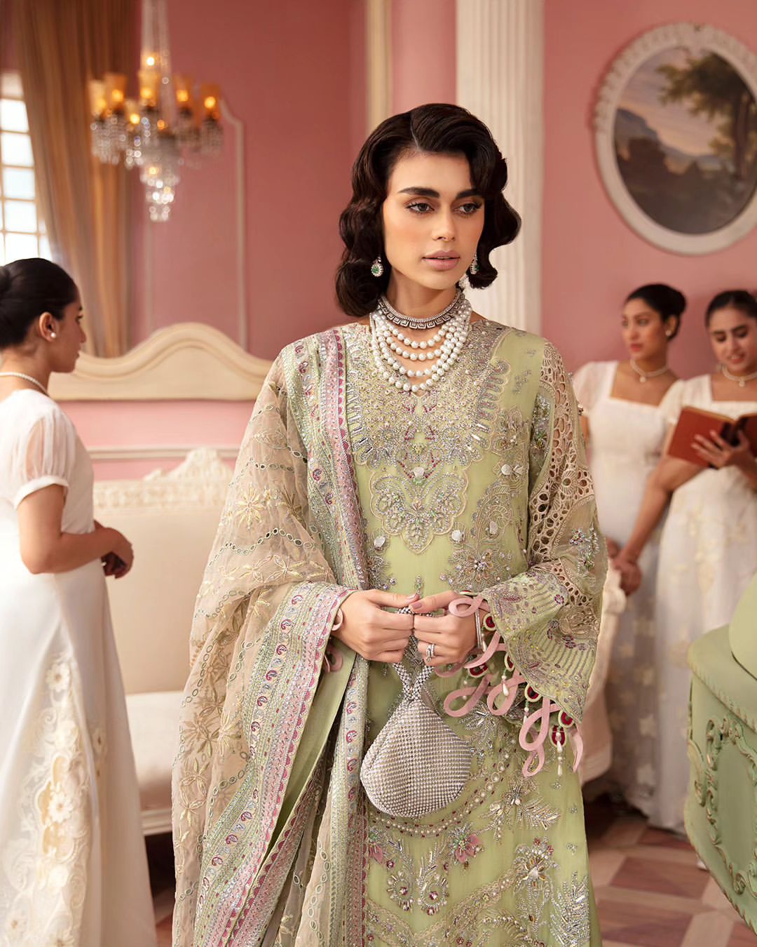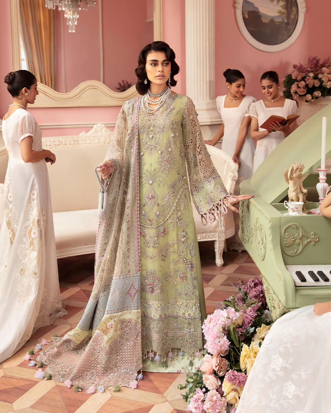 - Embroidered And Hand Embellished Chiffon Front