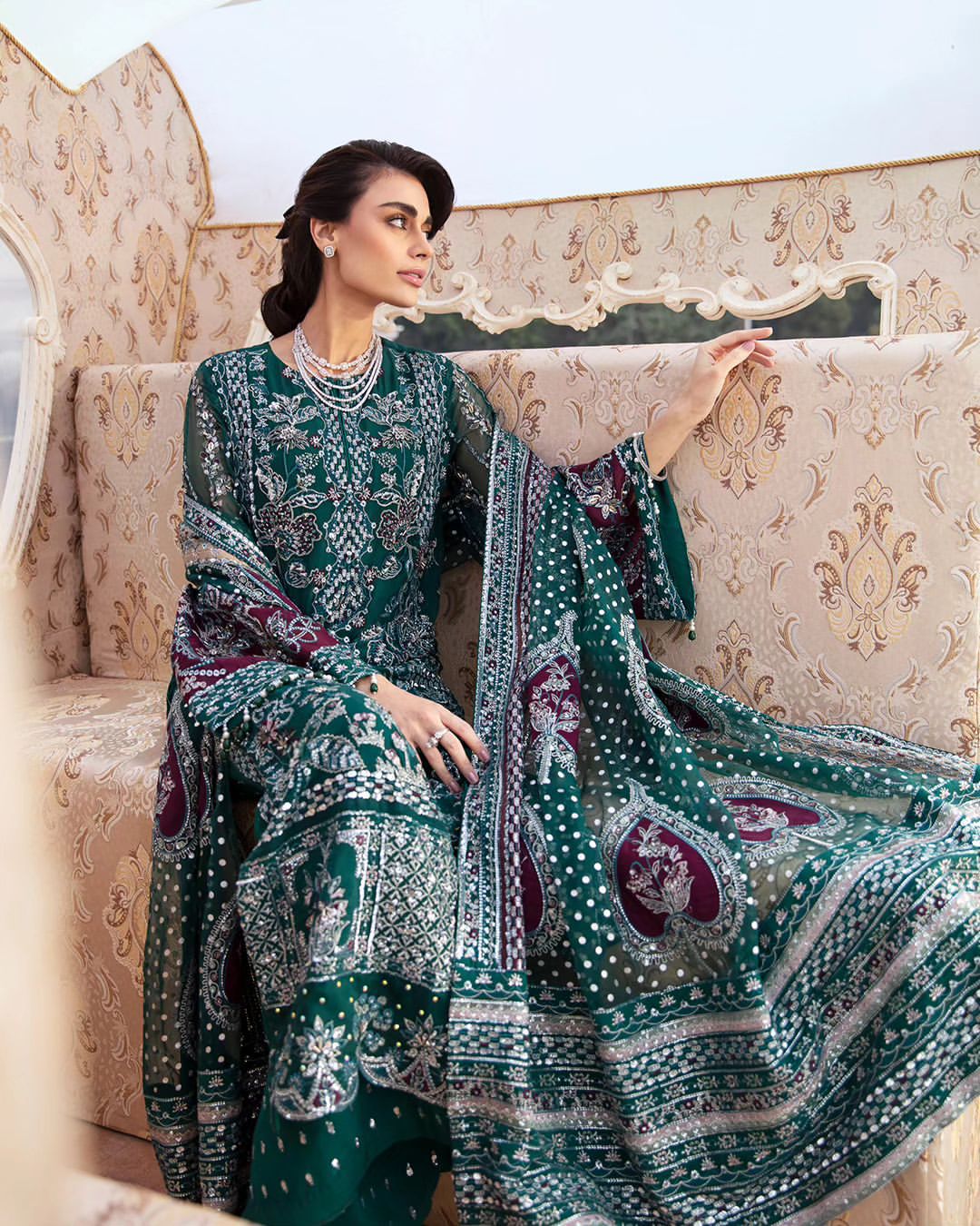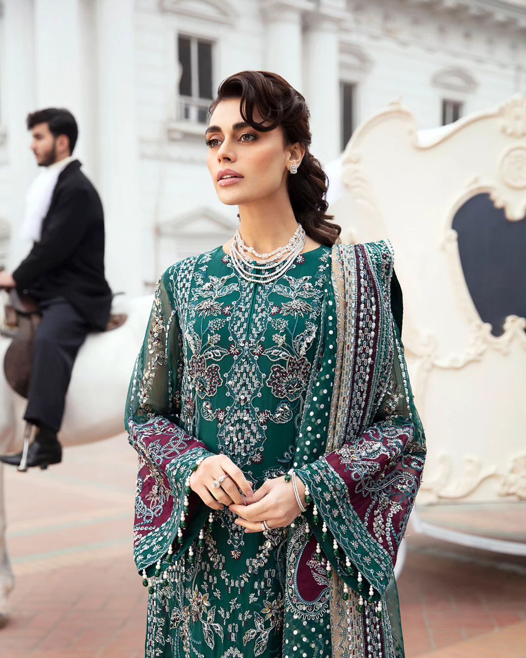 - Embroidered And Hand Embellished Chiffon Sleeves