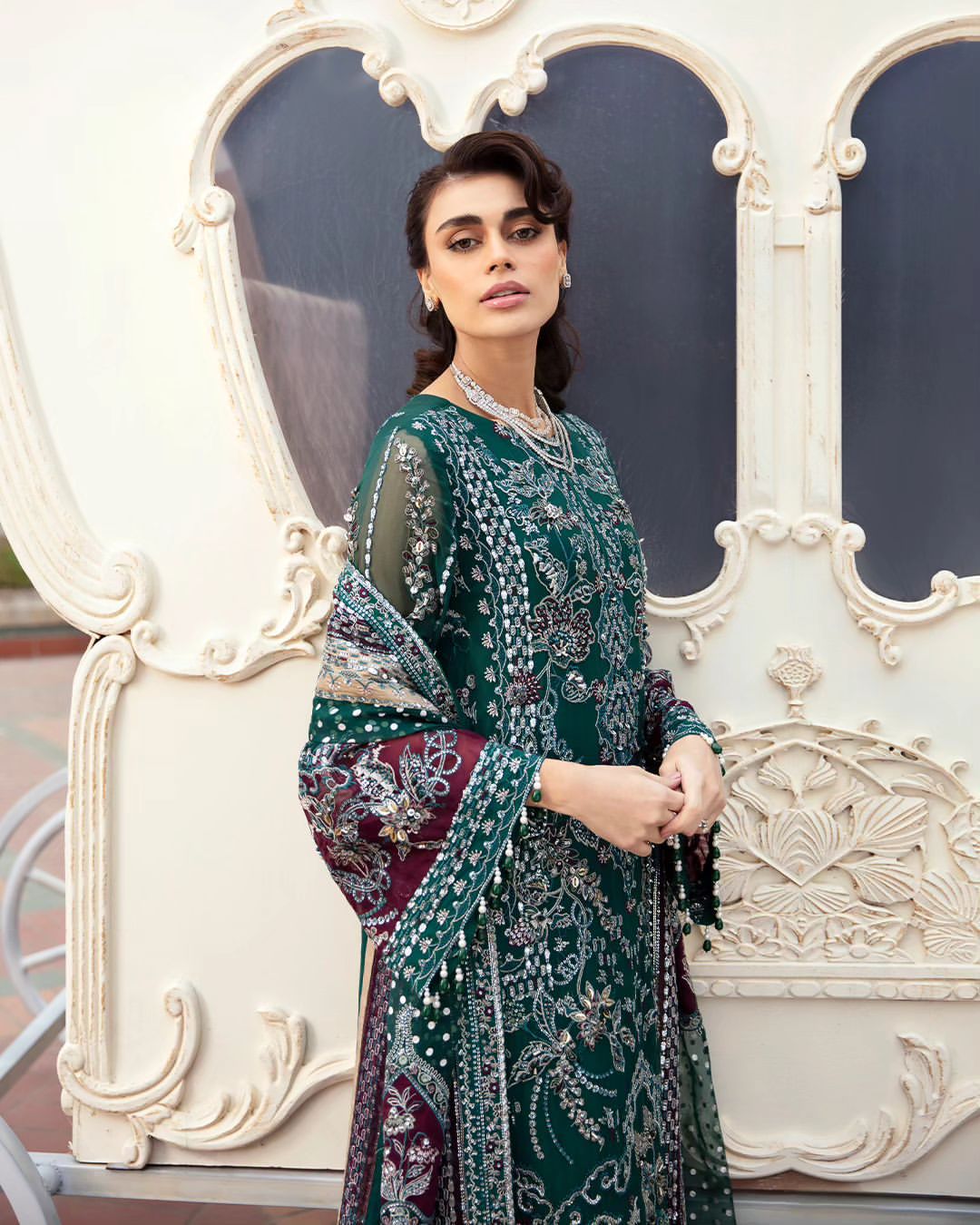 - Embroidered And Hand Embellished Chiffon Front