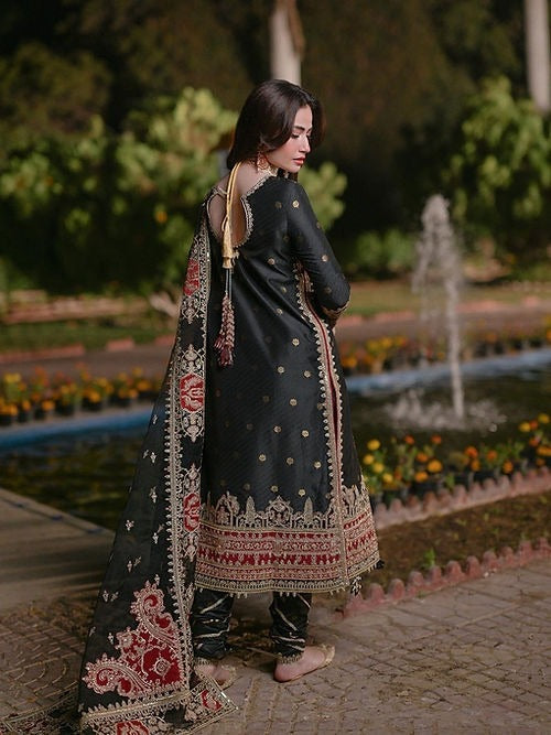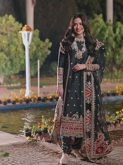 Sheesha Embroidered Border (Front) on Raw Silk (Hand Made)