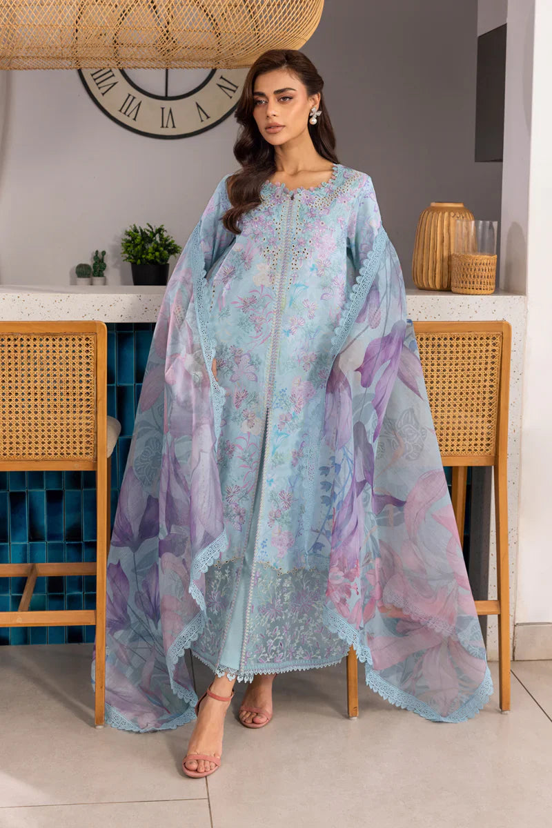 Dyed Organza Embroidered Front Right Side Daman 01 Piece.
