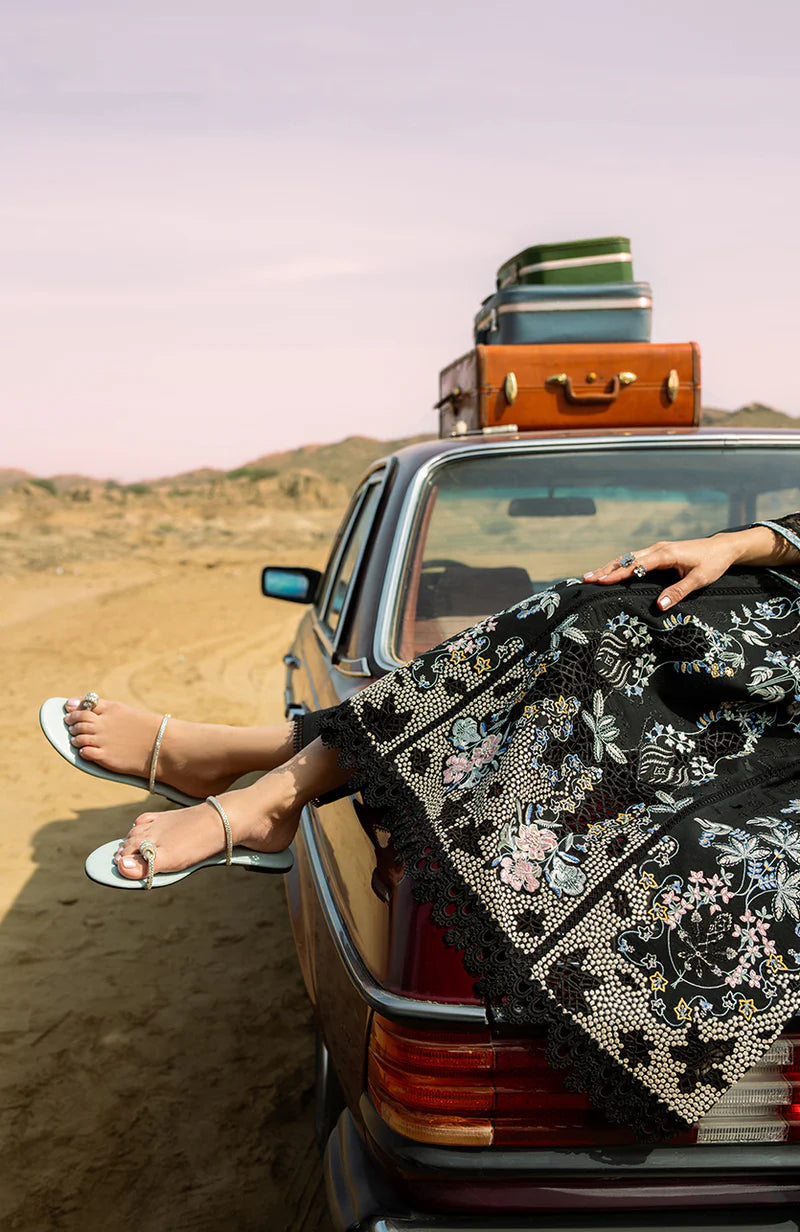 Own the night this Summer Season with a bold black kurta featuring unique inverse embroidery, organza Laces , and unique cutouts. Layered organza sleeves in mustard, blue, and black add a fun twist, while the sunny yellow spray adorned on georgette dupatta with a lacey border brings the perfect festive sparkle. Chic, statement-making, and made for summer celebrations!
