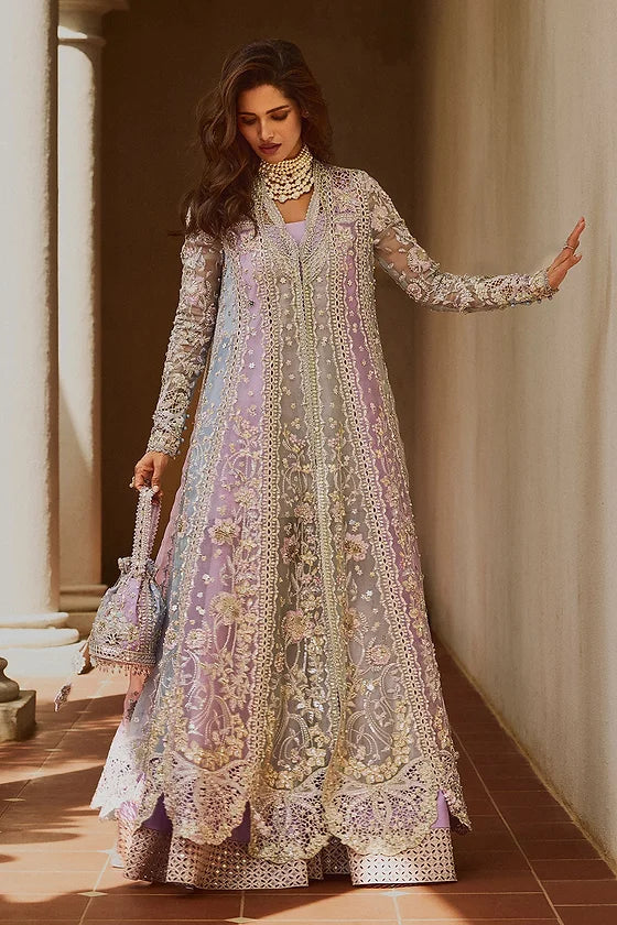 • Embroidered Hand Embellished Front Right+Left Panels B (Lilac Organza) - 2 Pc