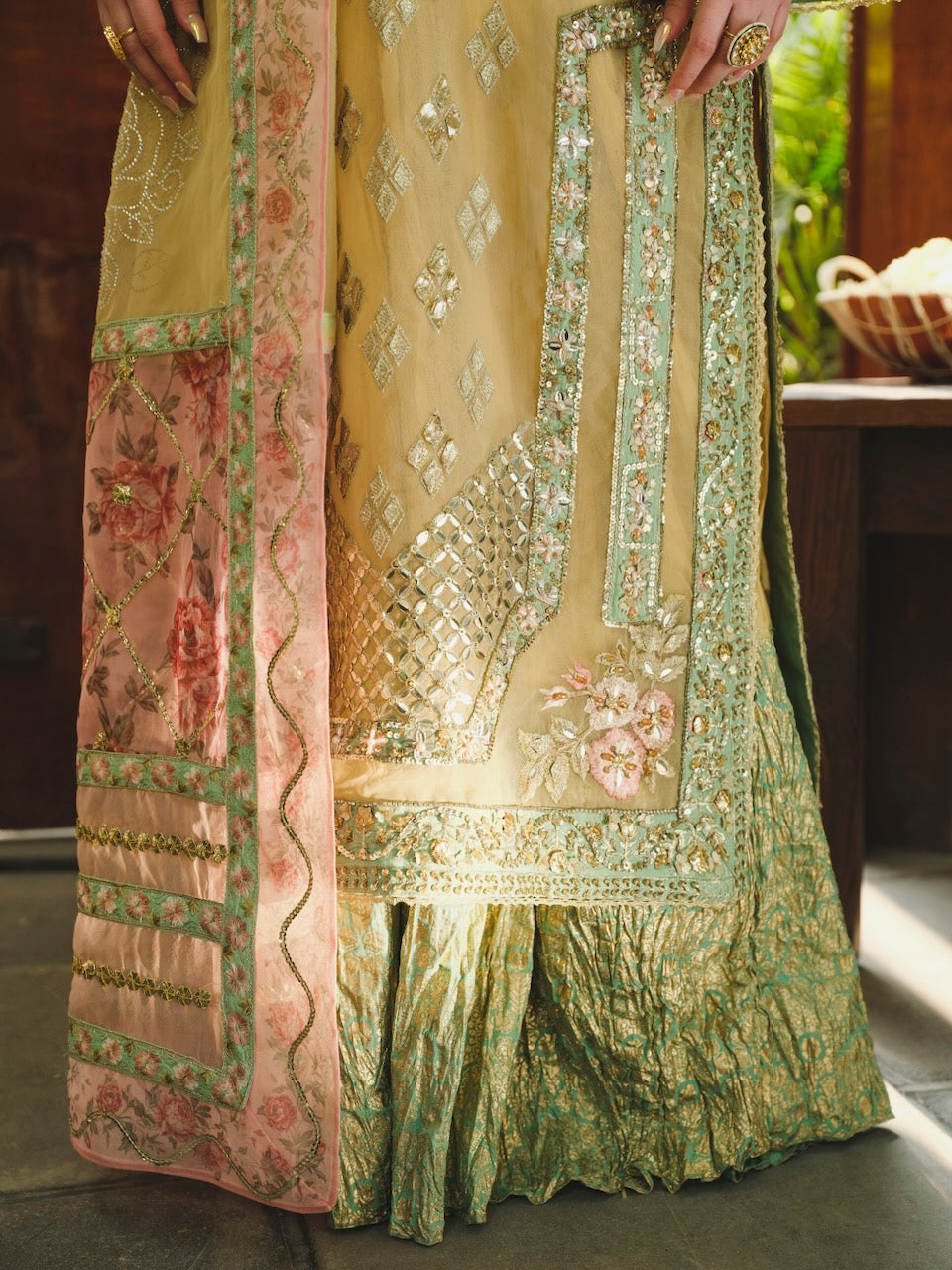 From time to time beading/ sequences may get displaced and this is not regarded as a fault but is due to the nature of the work. These garments should be worn with care.