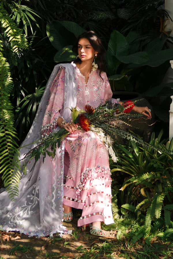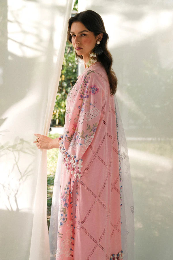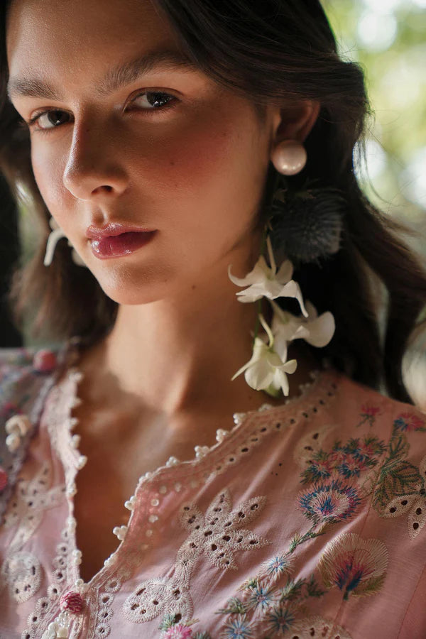 Embroidered Schiffli Shirt Side Kali ( L+R) On Slub Lawn 2 peices