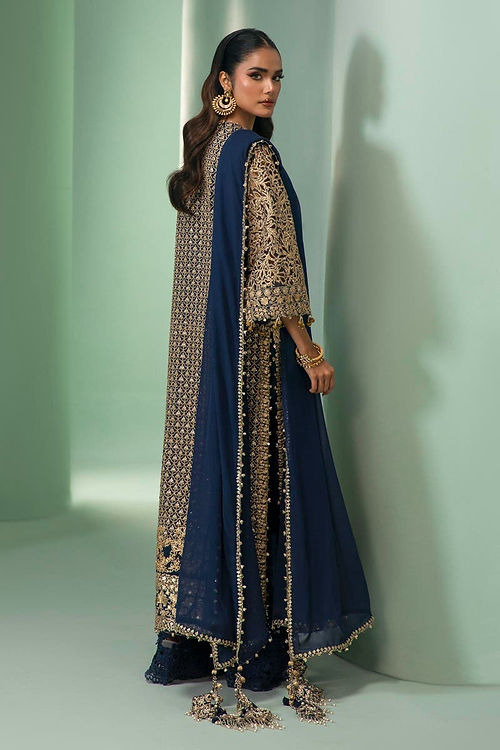| Front Hand Embellished Border Navy Blue Organza | 1 Piece |