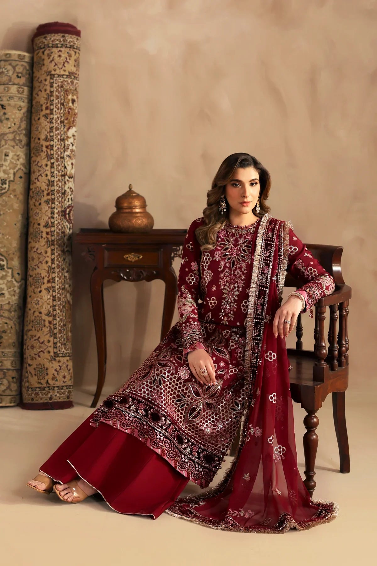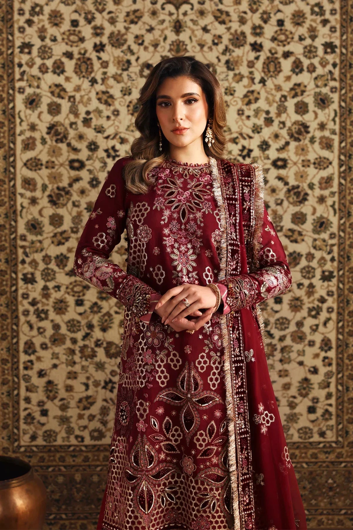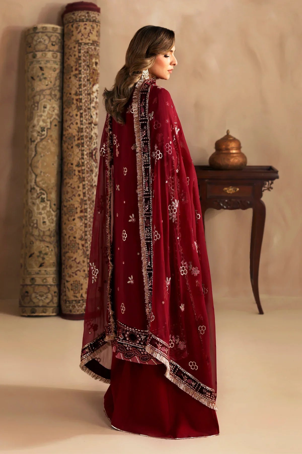 - Embroidered Velvet Dupatta Border