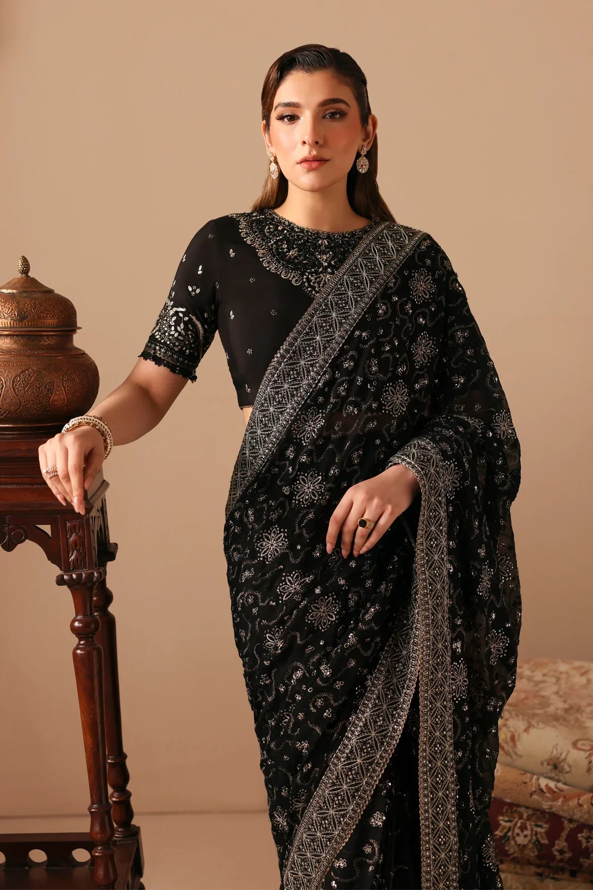 - Embroidered Chiffon Saree Fall – 1