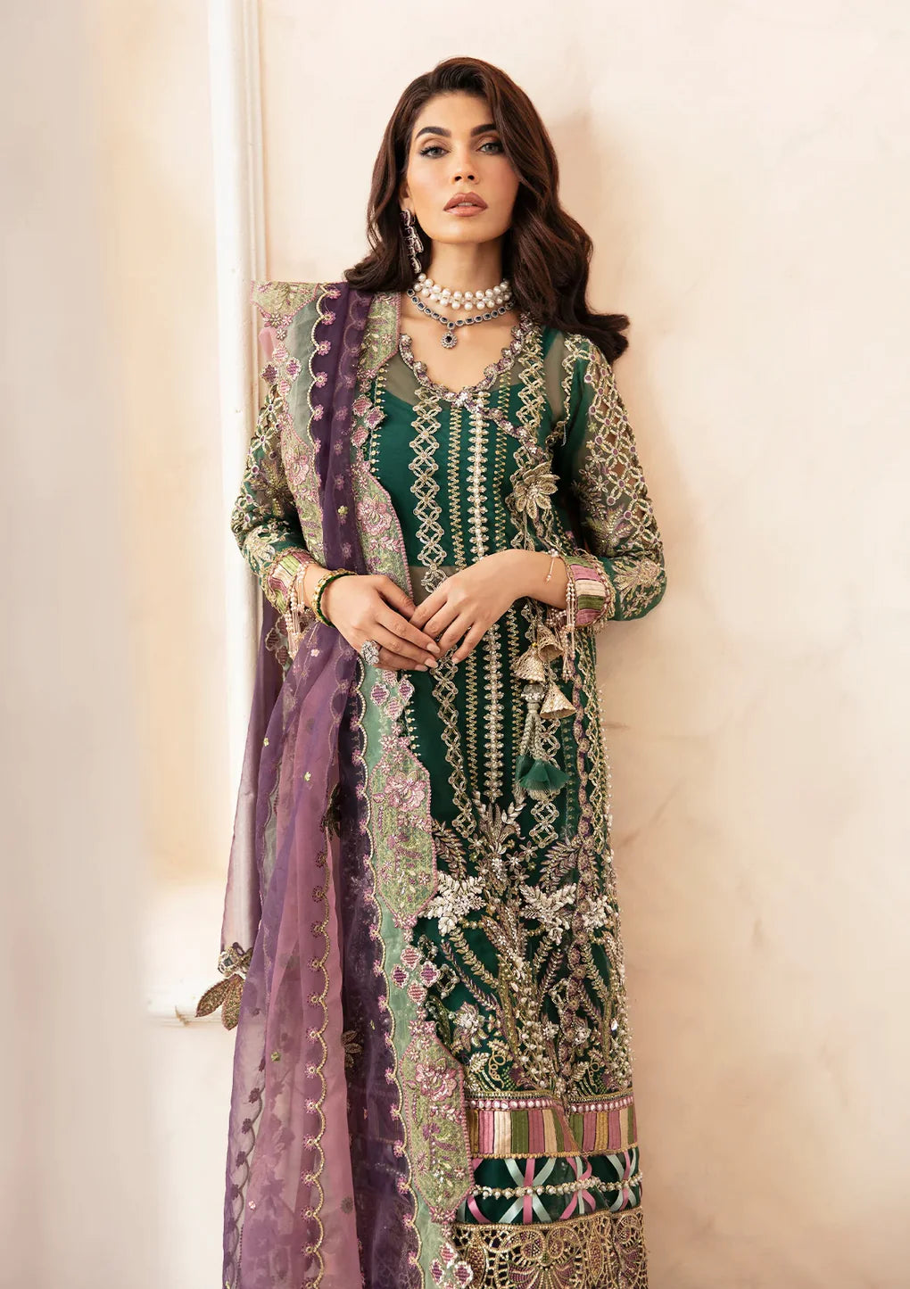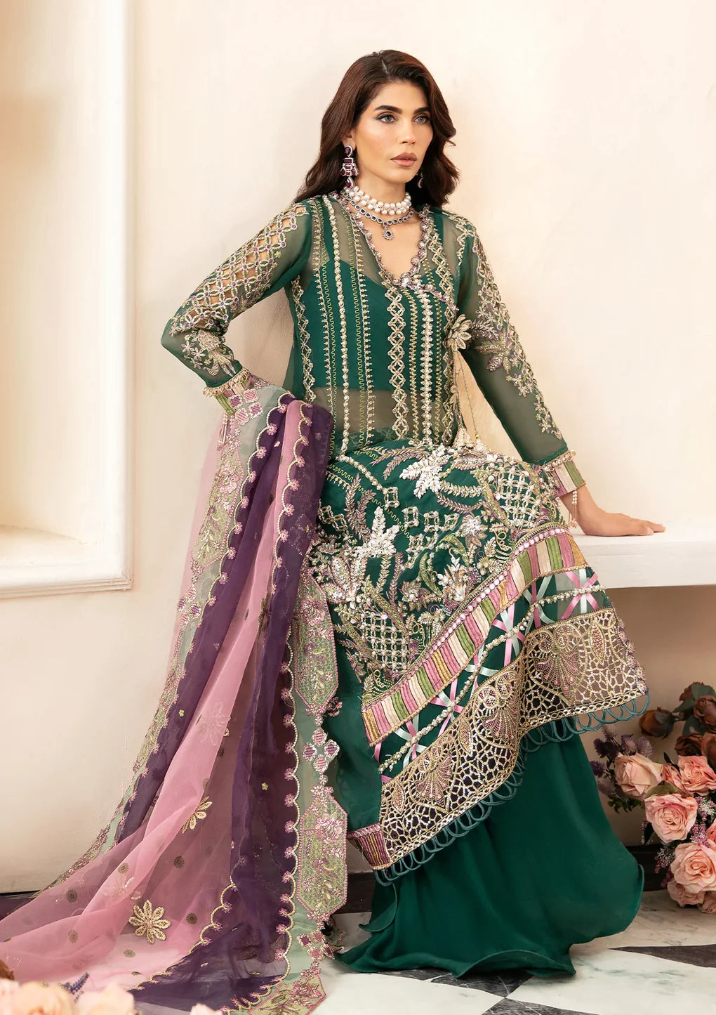 - Embroidered Organza Front & Back Daman & Sleeves Border: 03 meters
