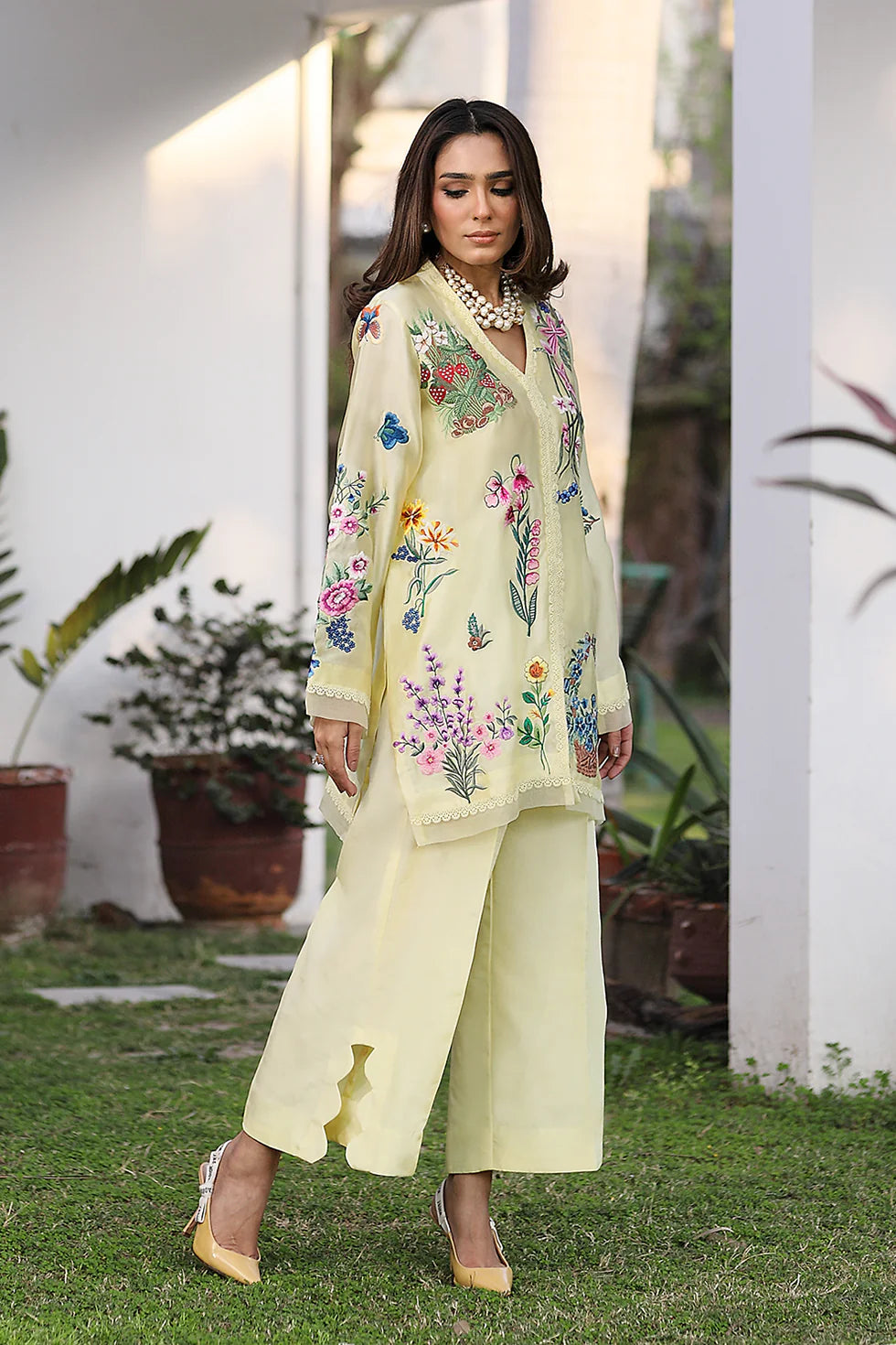 Details: Come as 2 pc - shirt with pants , adorned with intricate floral motifs and delicate lace, this duo blends luxury with charm.
