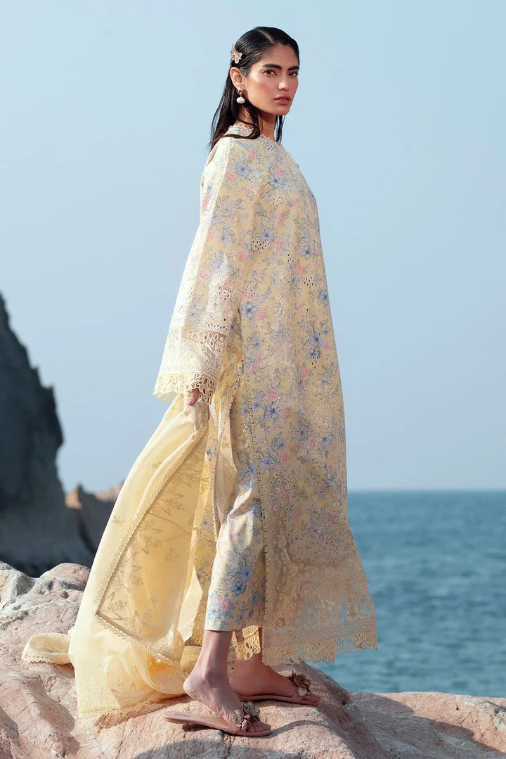 Radiate elegance in this lemon-hued ensemble adorned with intricate embroidery and organza borders a true celebration of effortless luxury.
