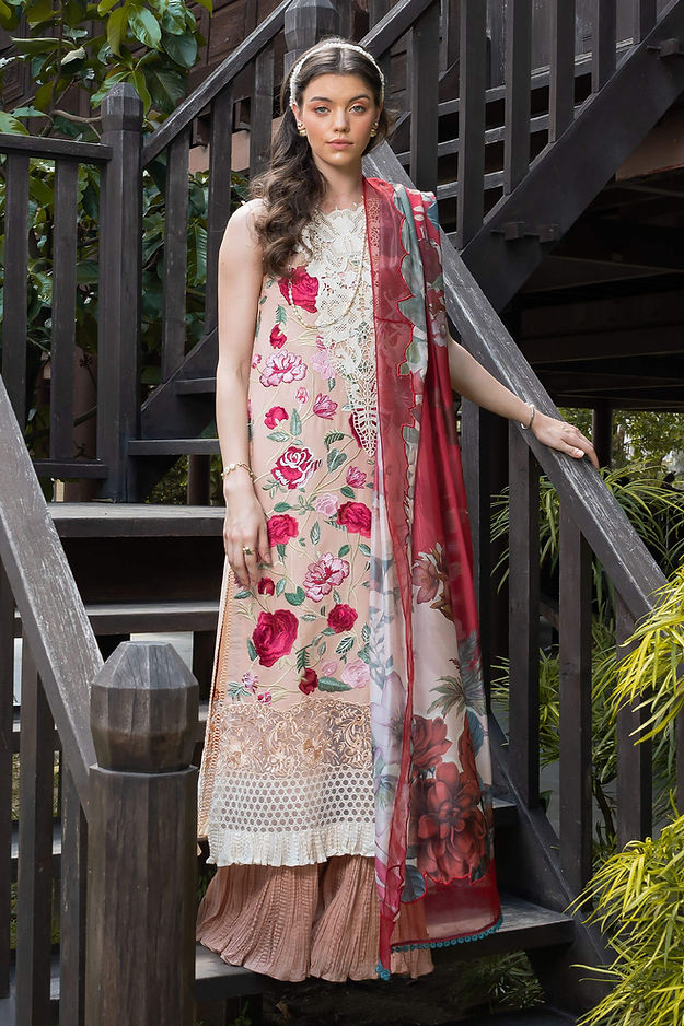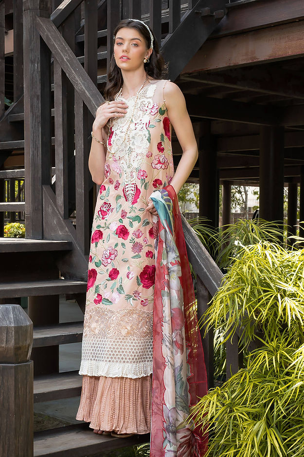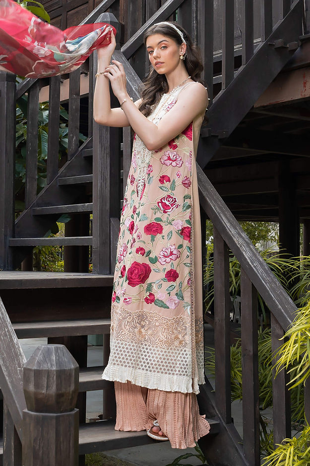 • Plain dyed lawn for back and sleeves.