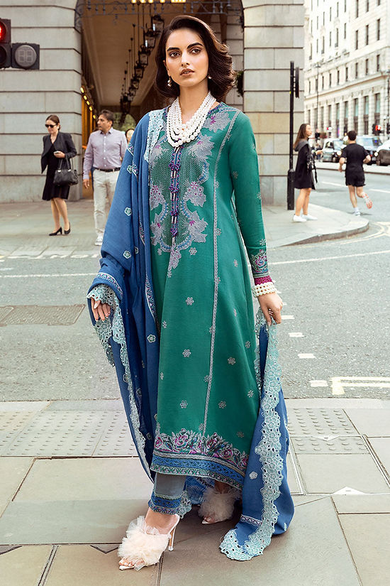 Discover the epitome of grace and sophistication with our "Camden Elegance" ensemble. The chikan embroidered khaddar shirt, adorned with intricate patterns, exudes timeless charm and understated elegance. The sequin embroidered neckline adds a touch of glamour, capturing the spotlight effortlessly. Paired with an embroidered khaddar shawl featuring delicate crochet lace finishing’s, this ensemble embodies classic beauty with a contemporary twist.