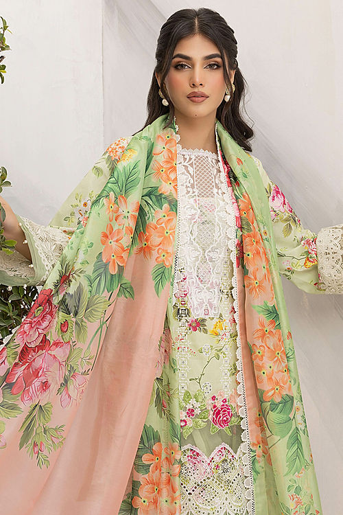 - Chikenkari and digital printed lawn for front.