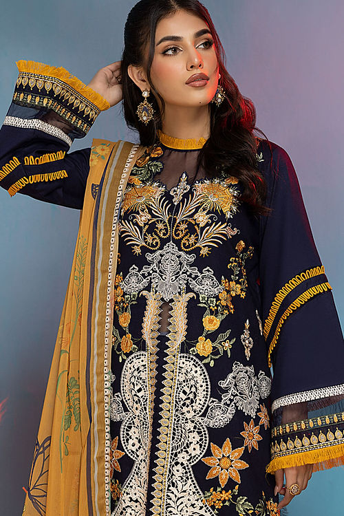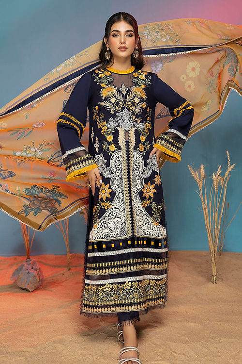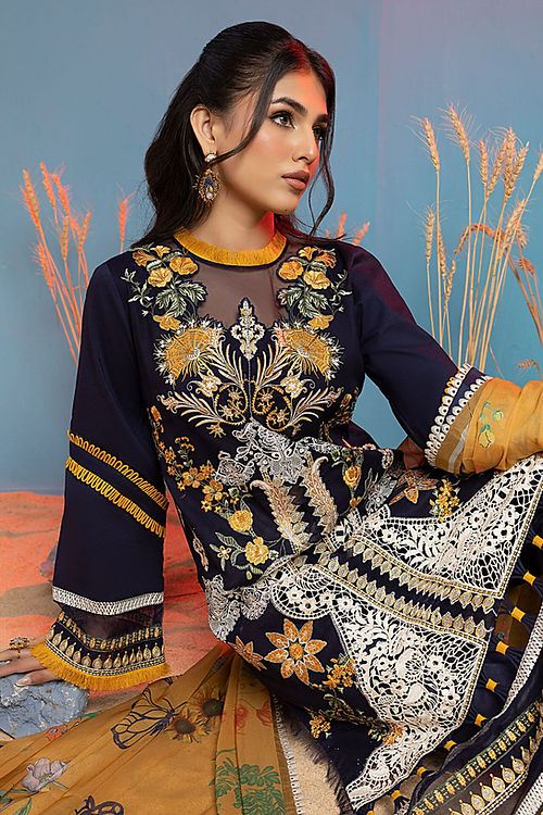 - Embroidered floral daman border for front.