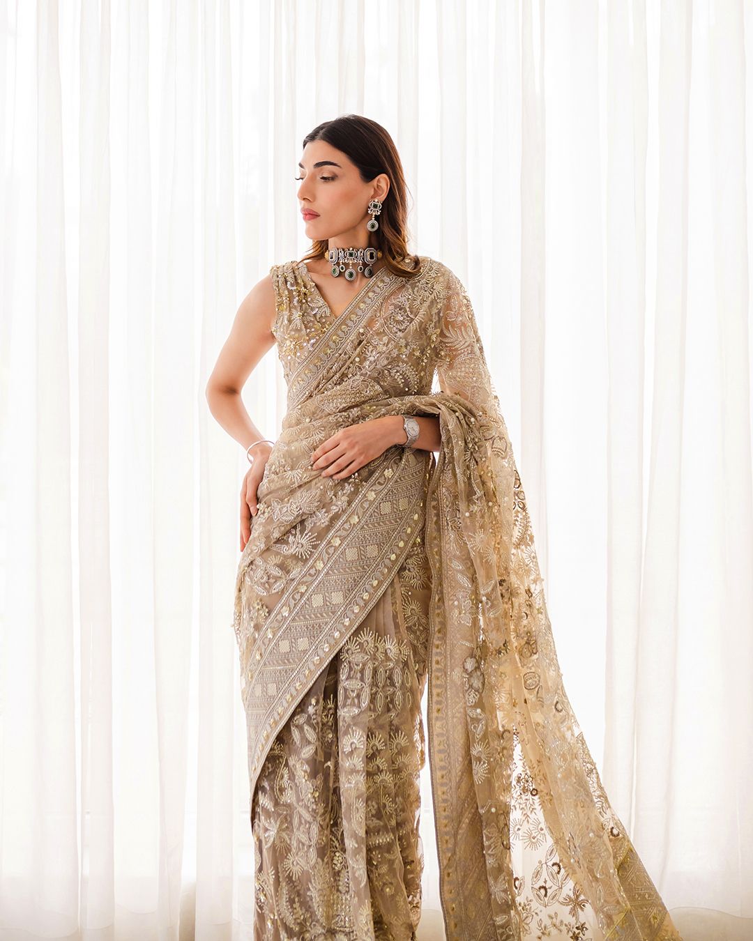 - Embroidered And Hand Embellished Net Sleeves