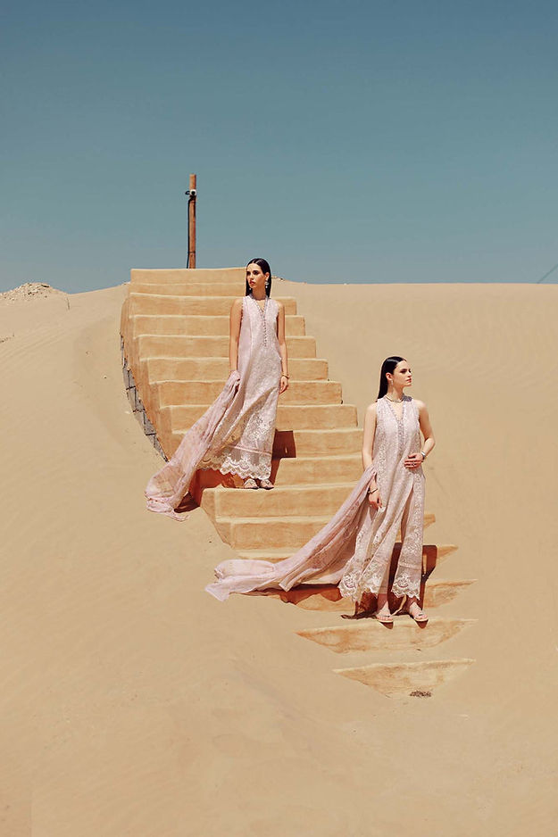 Schiffli embroidered lawn front center panel & embroidered side panels