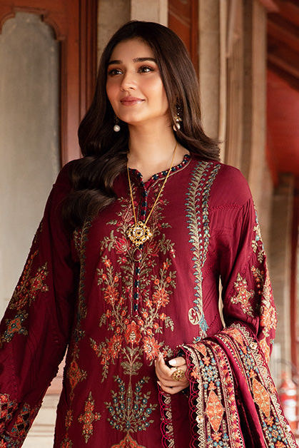 Embroidered Twill Linen Shawl Pallu Patches L+R