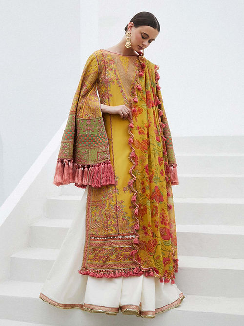 Please note: No custom accessories(tassels) will be added, we will however accessorize your stitched orders with matching beading to compliment the outfit