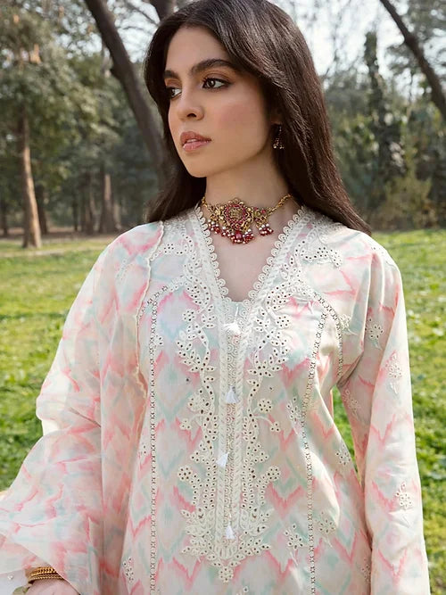- Digital Pritned Chikankari Embroidered Front Border