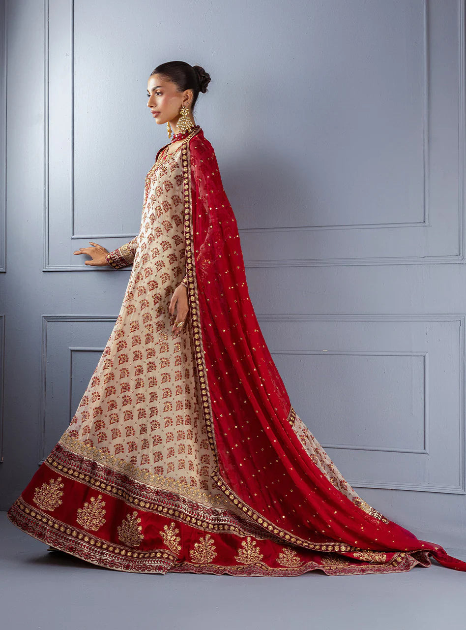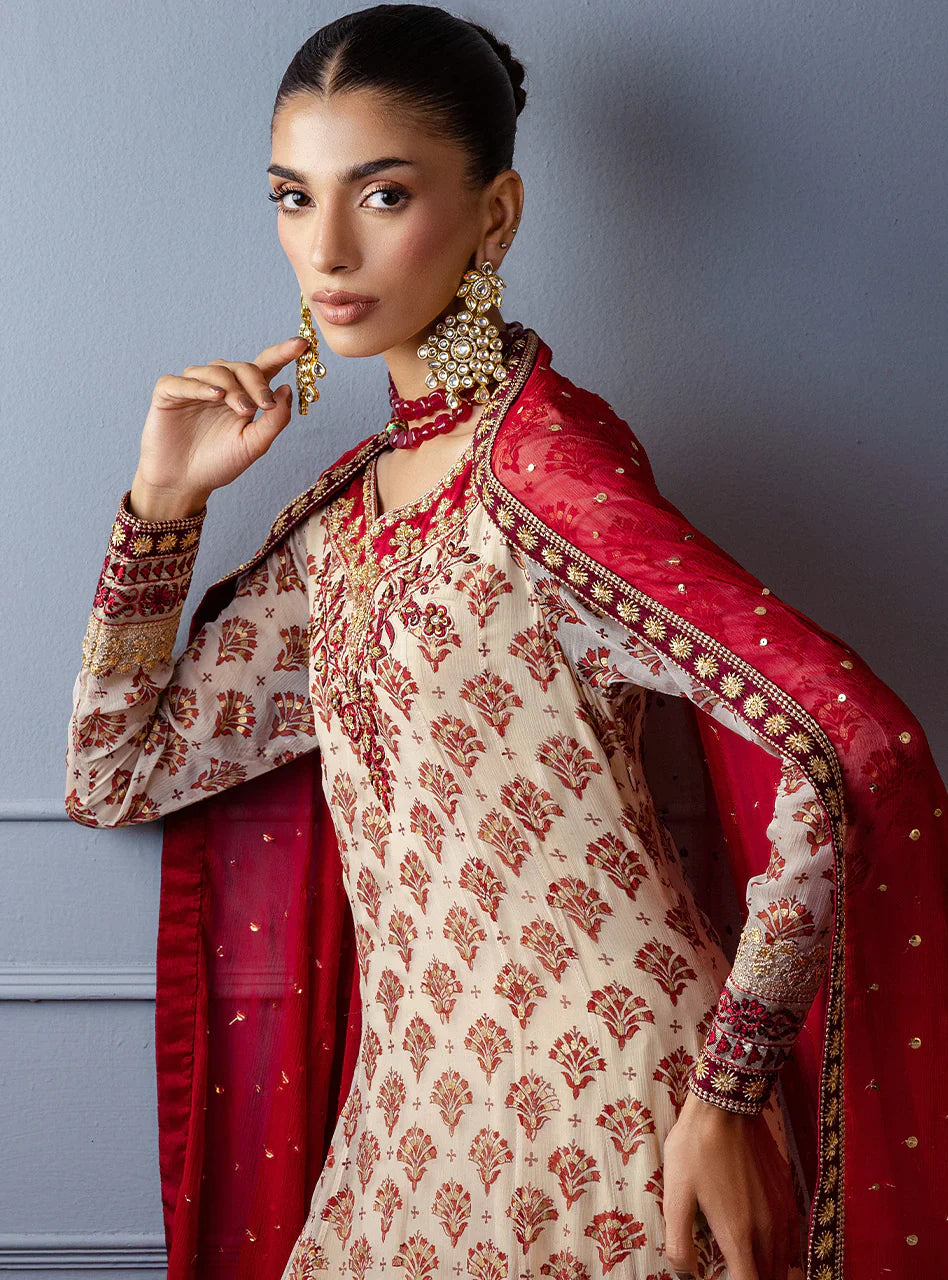 Radiate an undeniable allure with "Gulzar," a beautiful addition to our Nuriyeh collection. This captivating long frock, in a serene ivory, is brought to life by the striking beauty of its