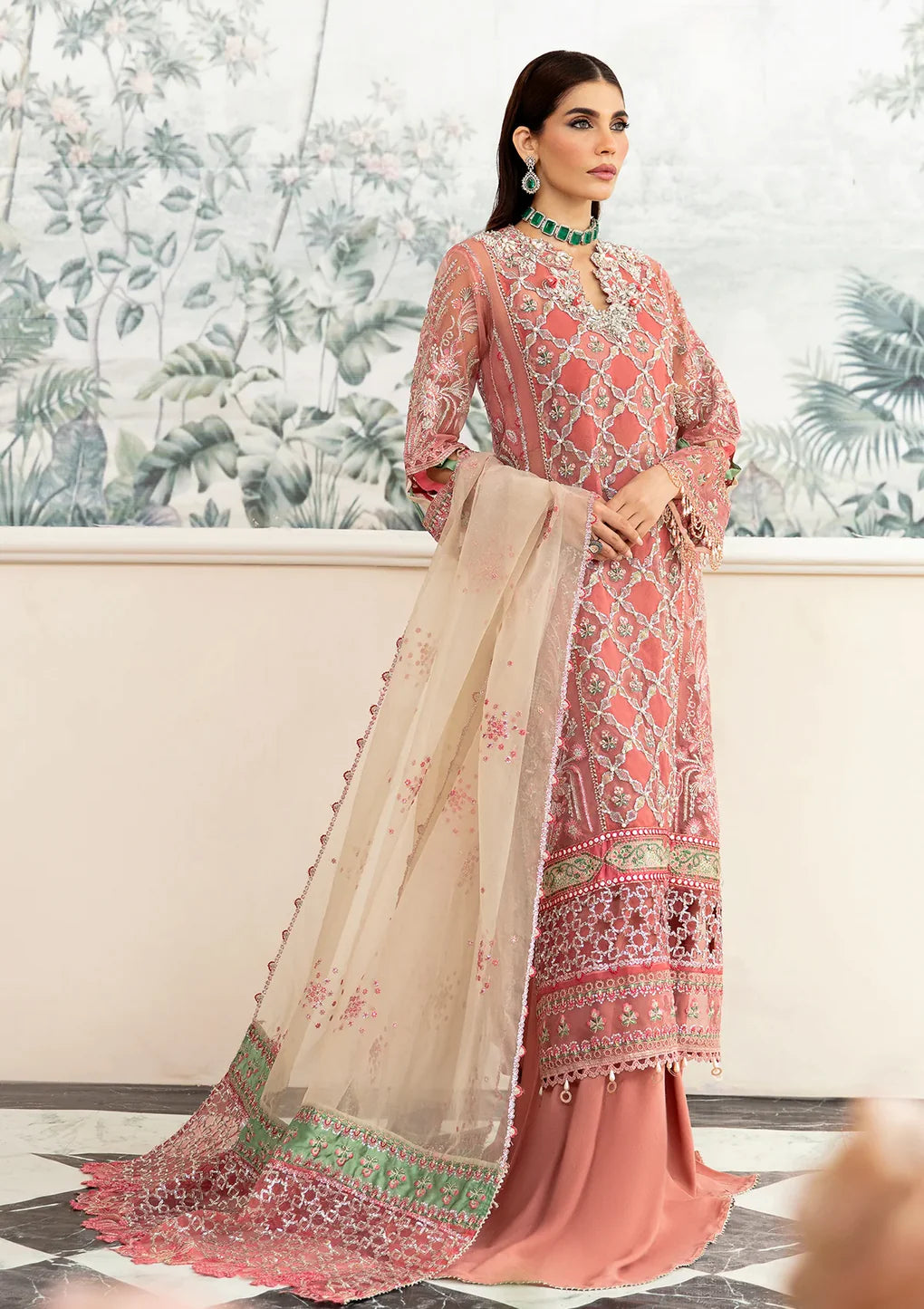 - Embroidered Organza Patch Work Dupatta: 2.5 meters