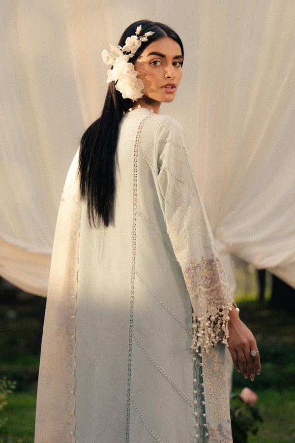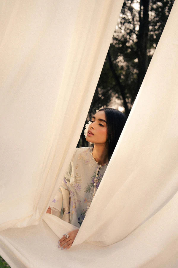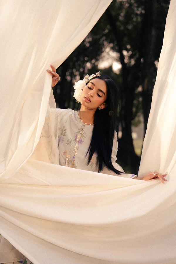 Embroidered Side Kali On Slub Lawn  2 Pieces