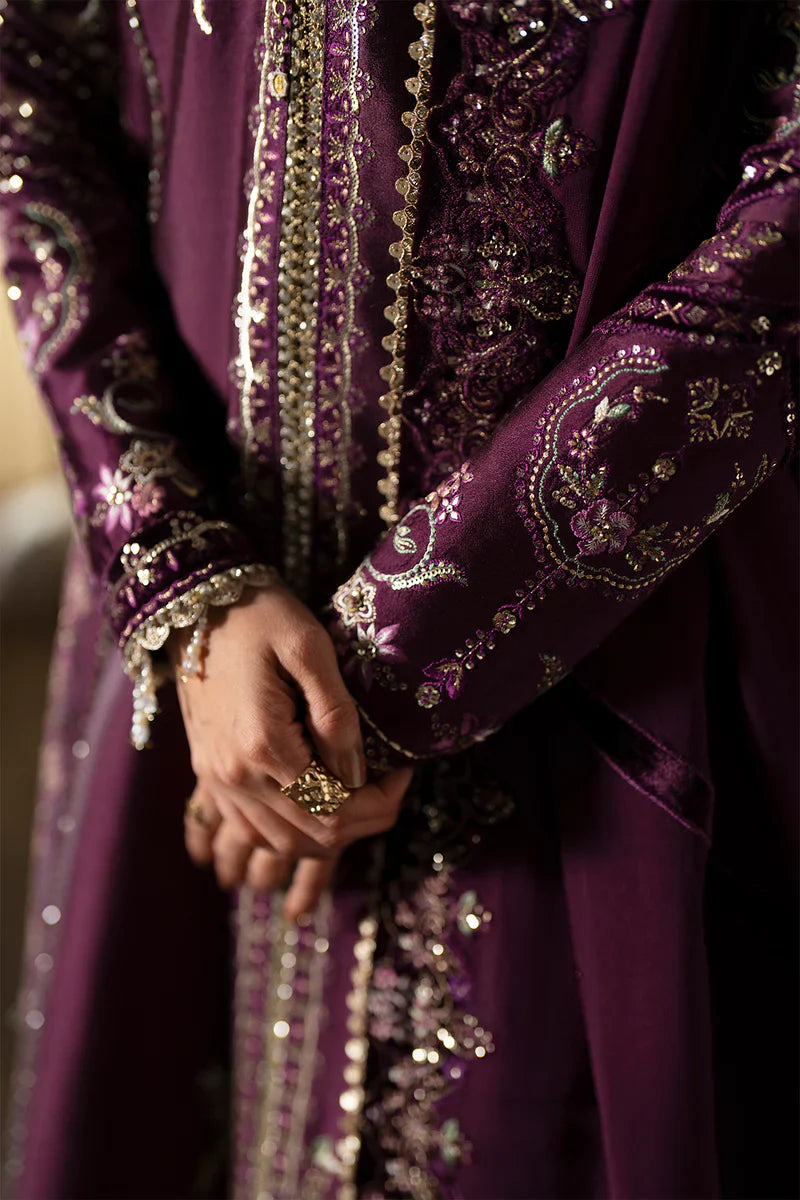Elevate your style with our plum open shirt featuring beautiful embroidery and intricate cutwork. It pairs beautifully with flowy sharara pants and a delicate chiffon dupatta, making it the perfect choice for special occasions.
