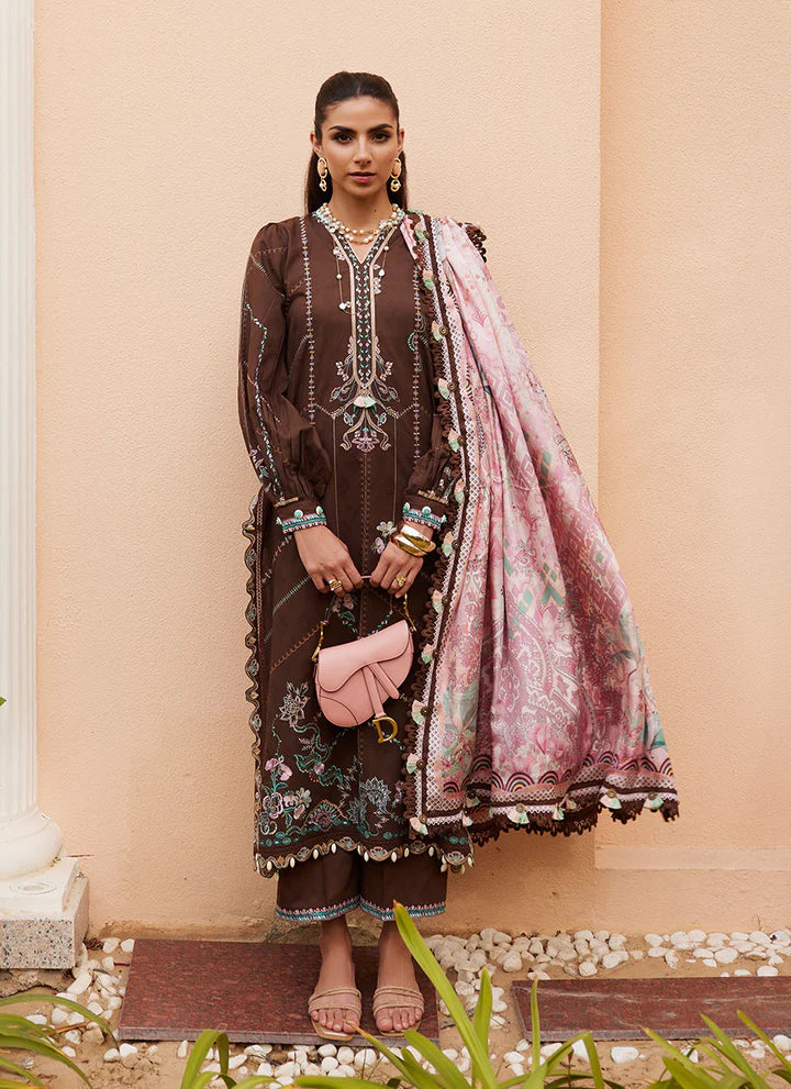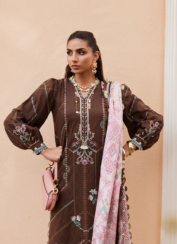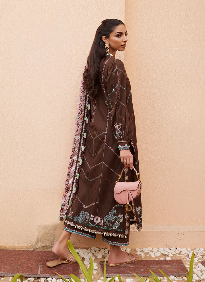 Introducing for the first time our most loved shade of the year, a rich chocolate hue. The luscious botanical and chevron inspired embroidery in pink, lavender and fresh green shades. The stunning pure medium silk dupatta in summery hues completes the ensemble with magical flair. The comfortable, jacquard pants will keep you comfortable day or night. Breeze through summer in an irresistible design that do more for your look, than ever before!