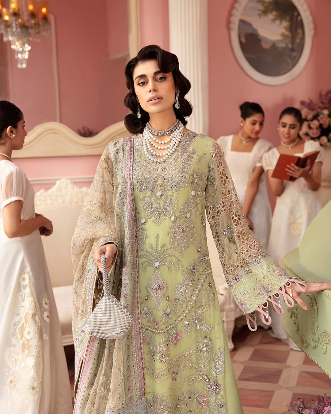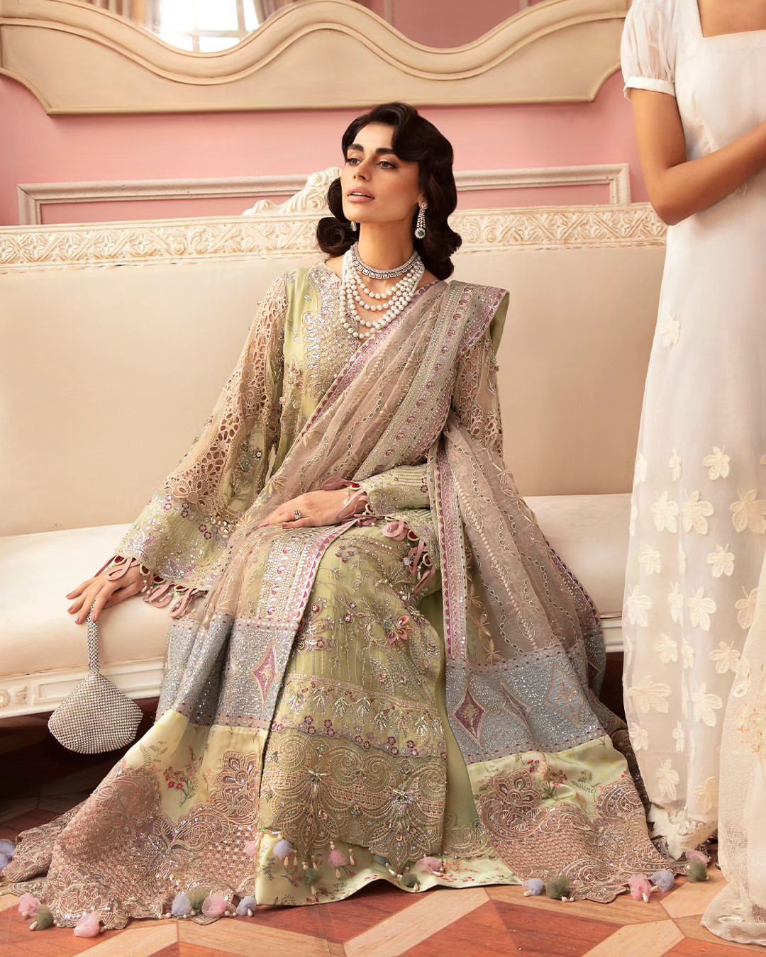 - Embroidered And Hand Embellished Chiffon Sleeves With Cutwork