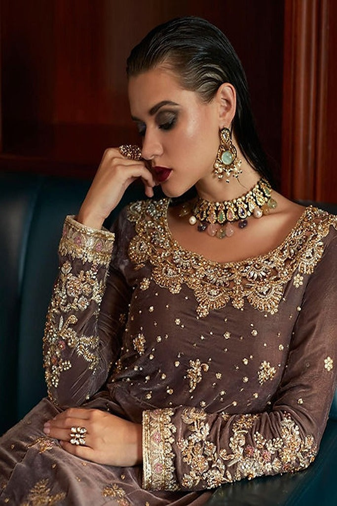 - Embroidered, Sequinned and Hand Embelished Velvet for Front Yoke