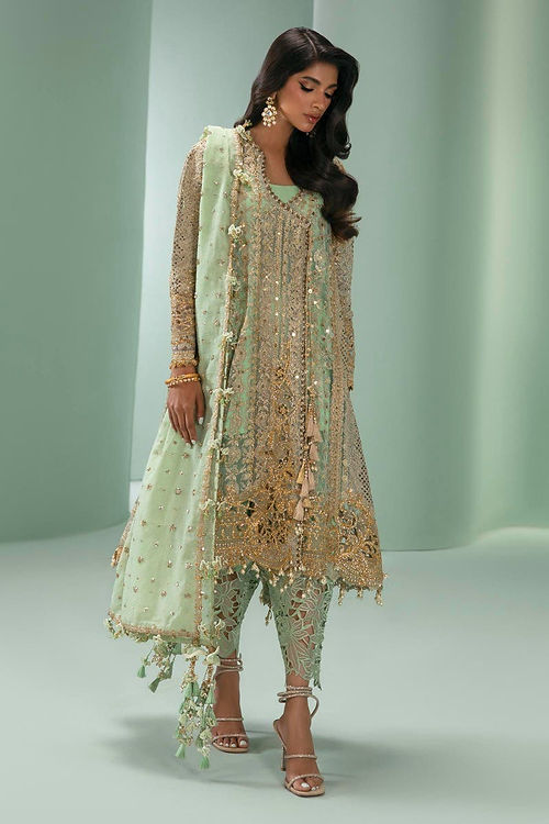 | Shirt Embroidered Jaal Mint Green Net | 4 Meters |